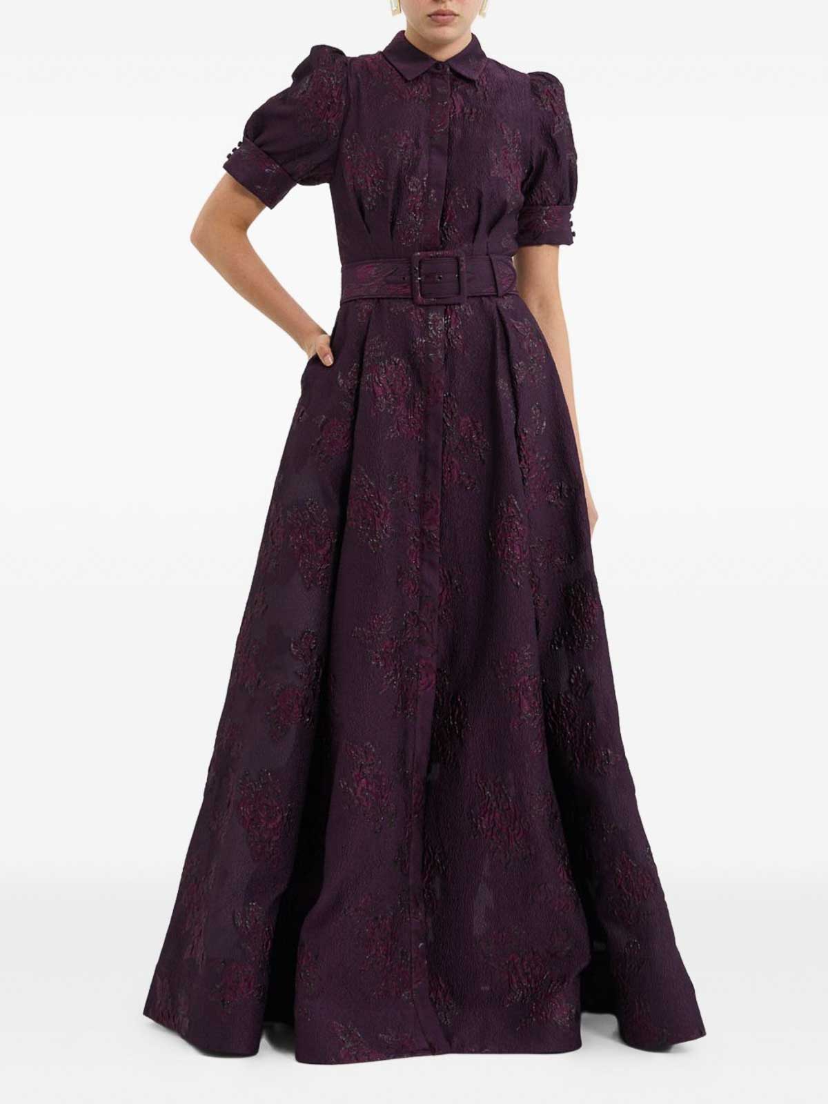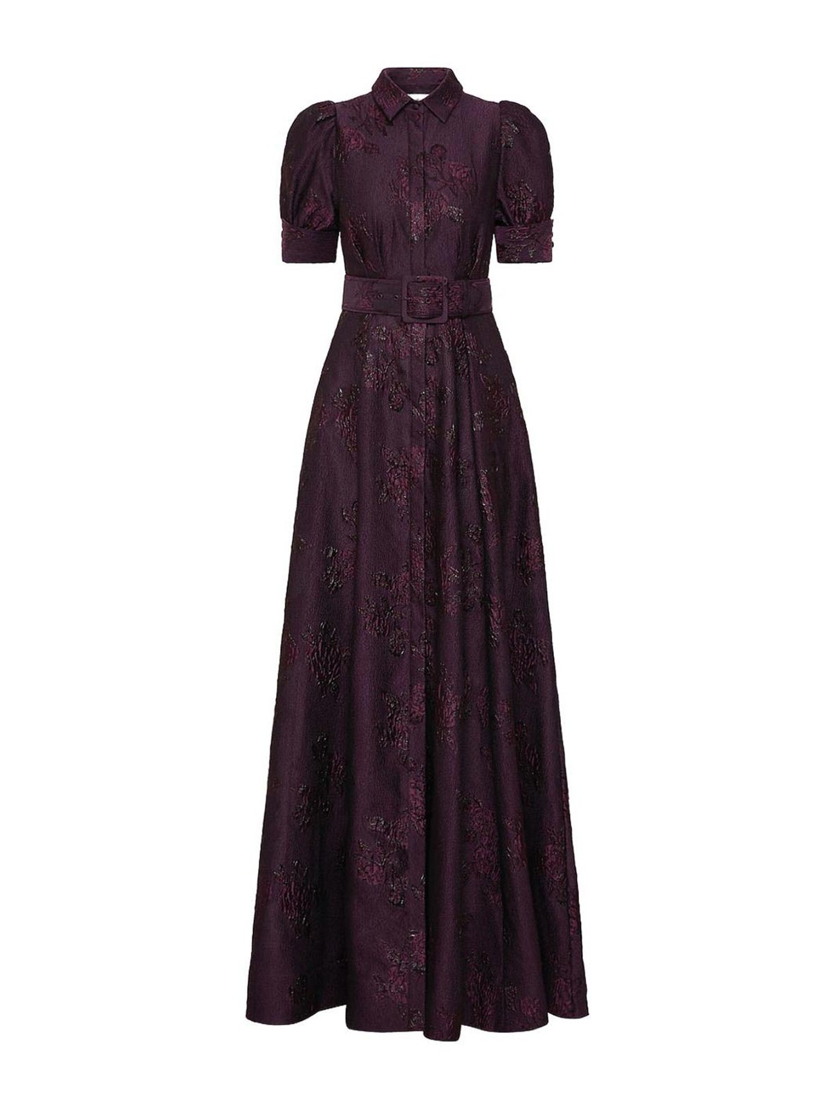 レベッカ・ヴァランスのベルト付きパープルロングドレス「afina」