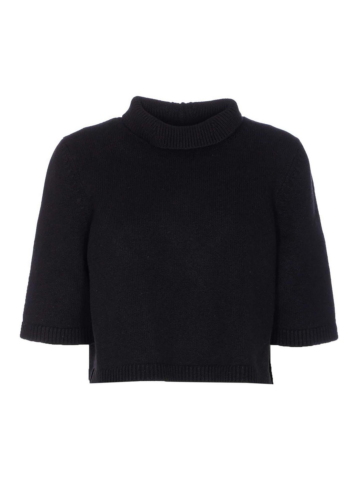 Alaia ブラッククロップジャンパーセーター、ハイネック、3/4スリーブ