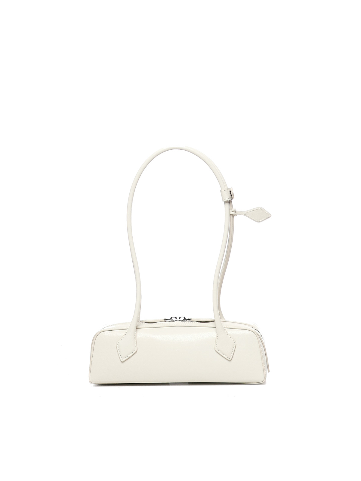 ダブルスライダージップクロージャー、チューブラーハンドル、取り外し可能なミラー付きインナーポケット、イタリア製、寸法:27 x 9 x 8 cm、色:アイボリー