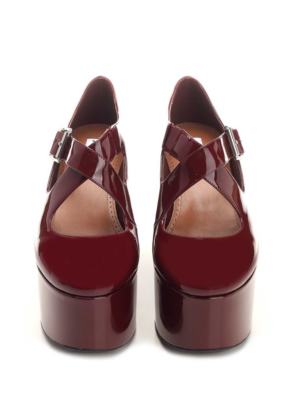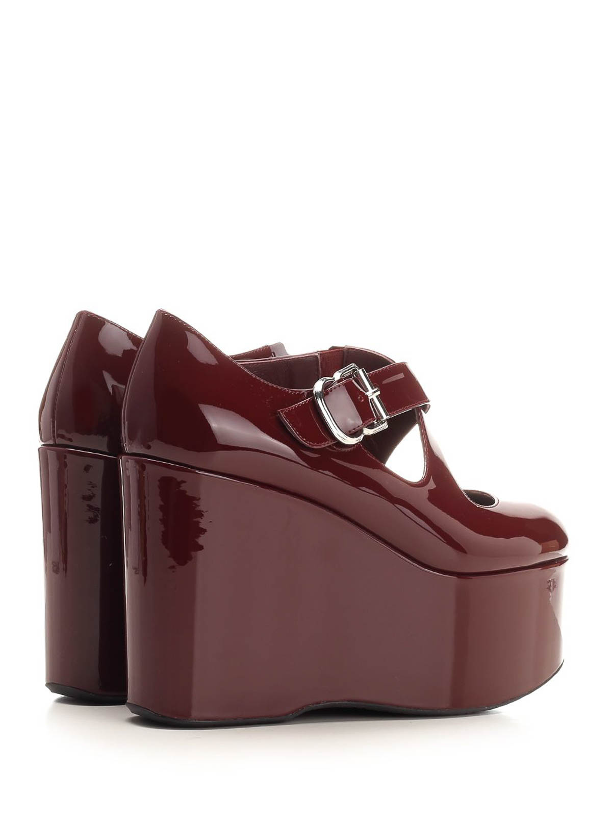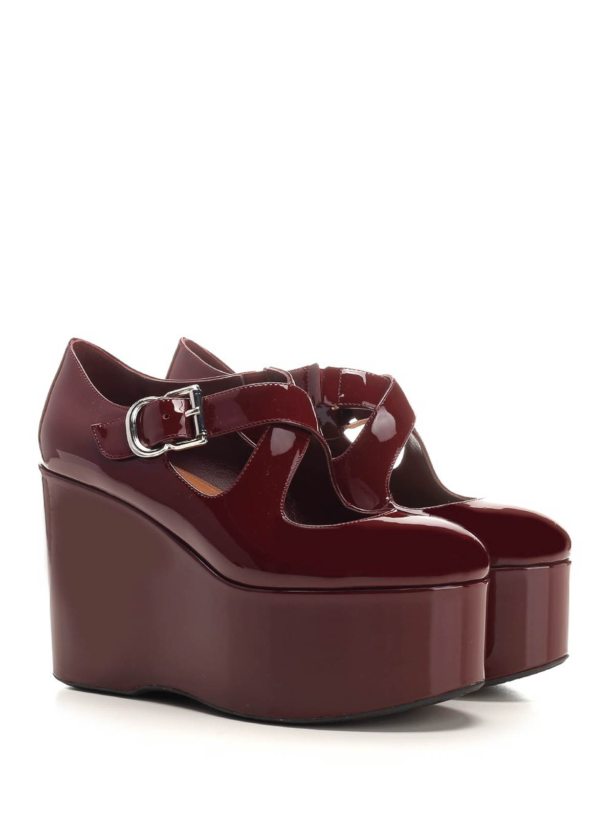 alaiaのガーネットレッドのパテントカーフスキンを使用したクロスウェッジ。