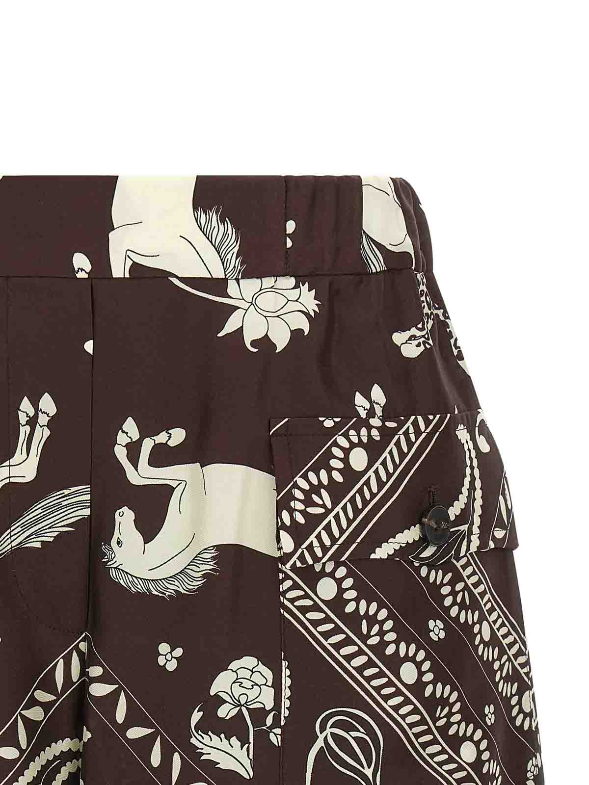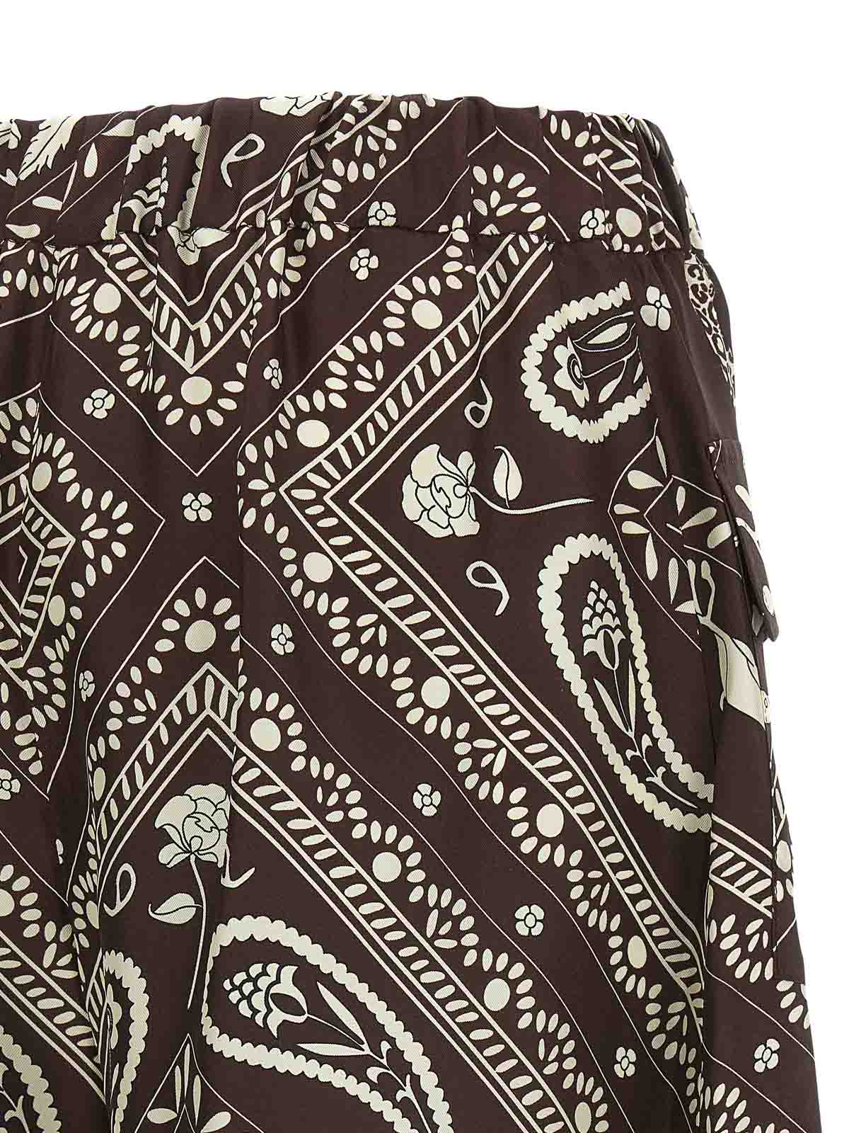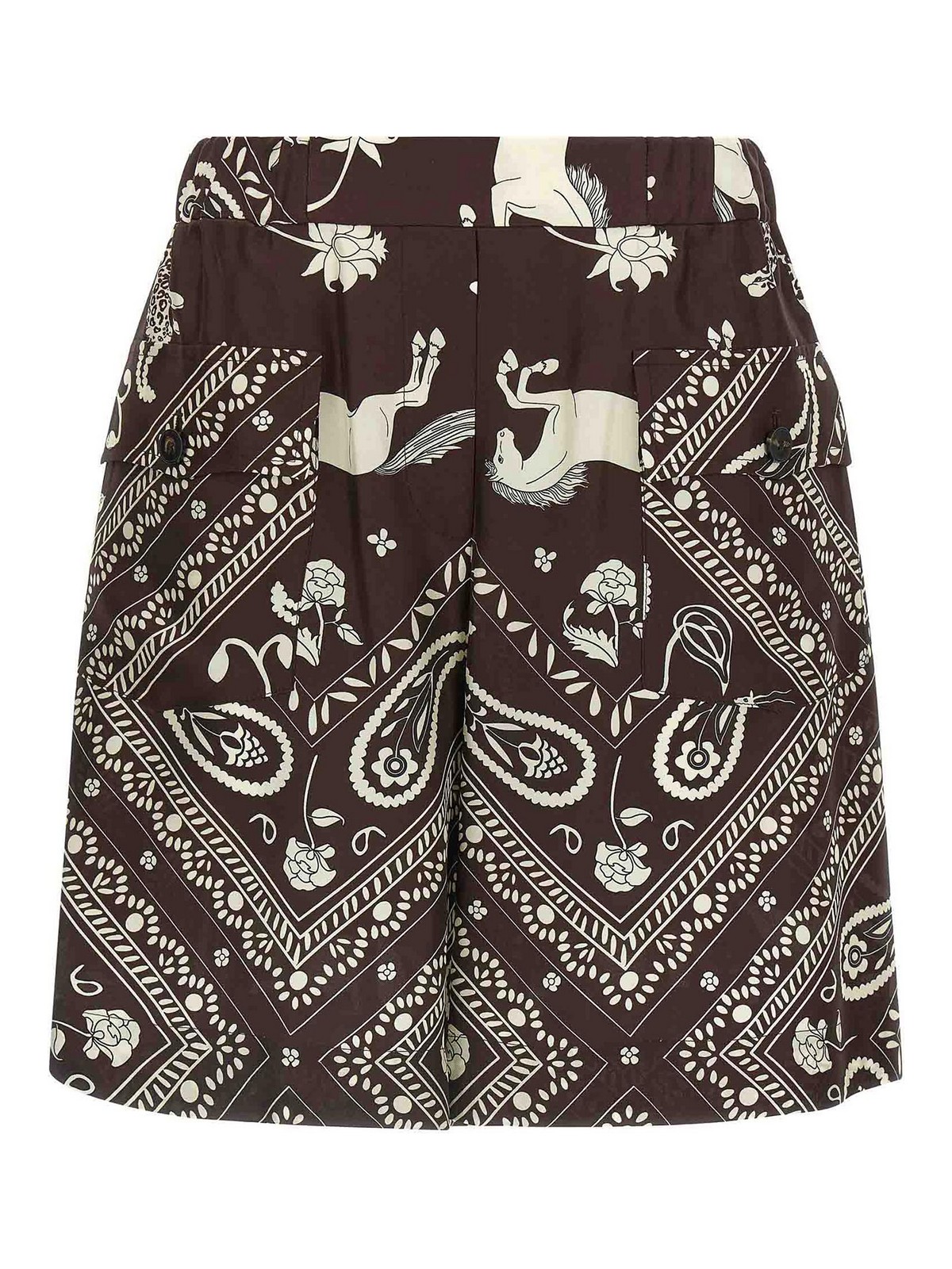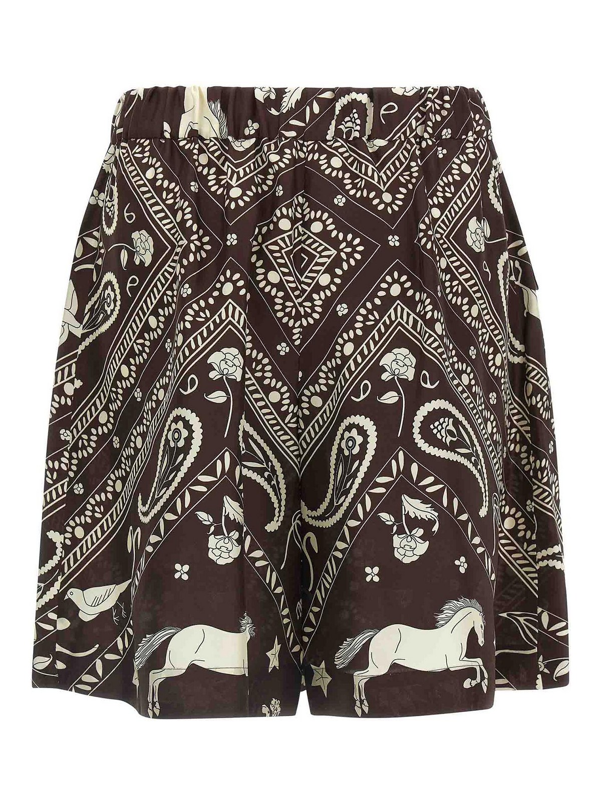バンダナプリントのシルクバミューダショーツ、伸縮性のあるバックウエストバンド、Trompe l'Eilフラップ、ポケット。