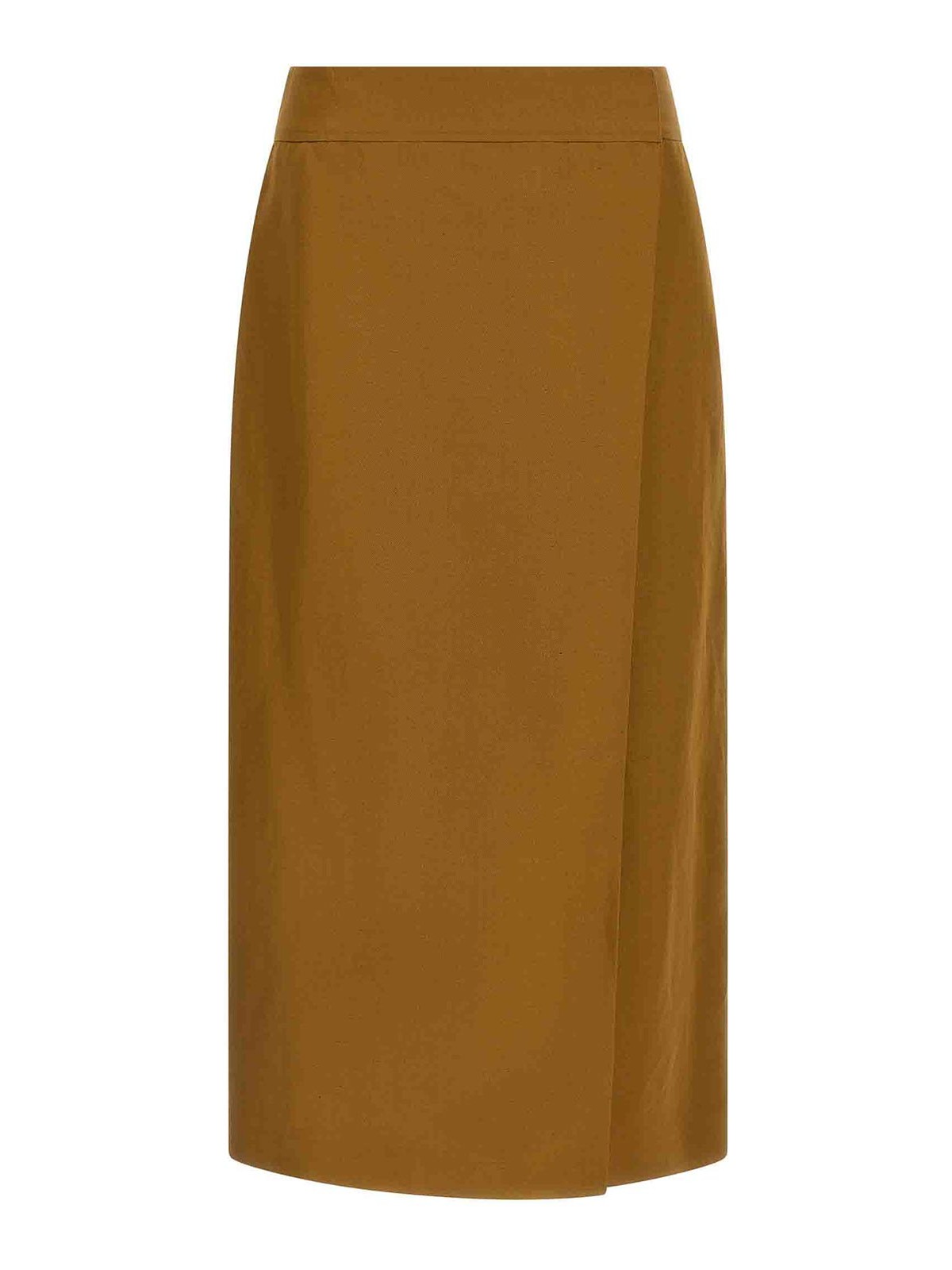 ビスコースとリネンの混紡ミディスカート。アシンメトリーなクロージャーとフロントフックが付いたウォレットスタイル。
