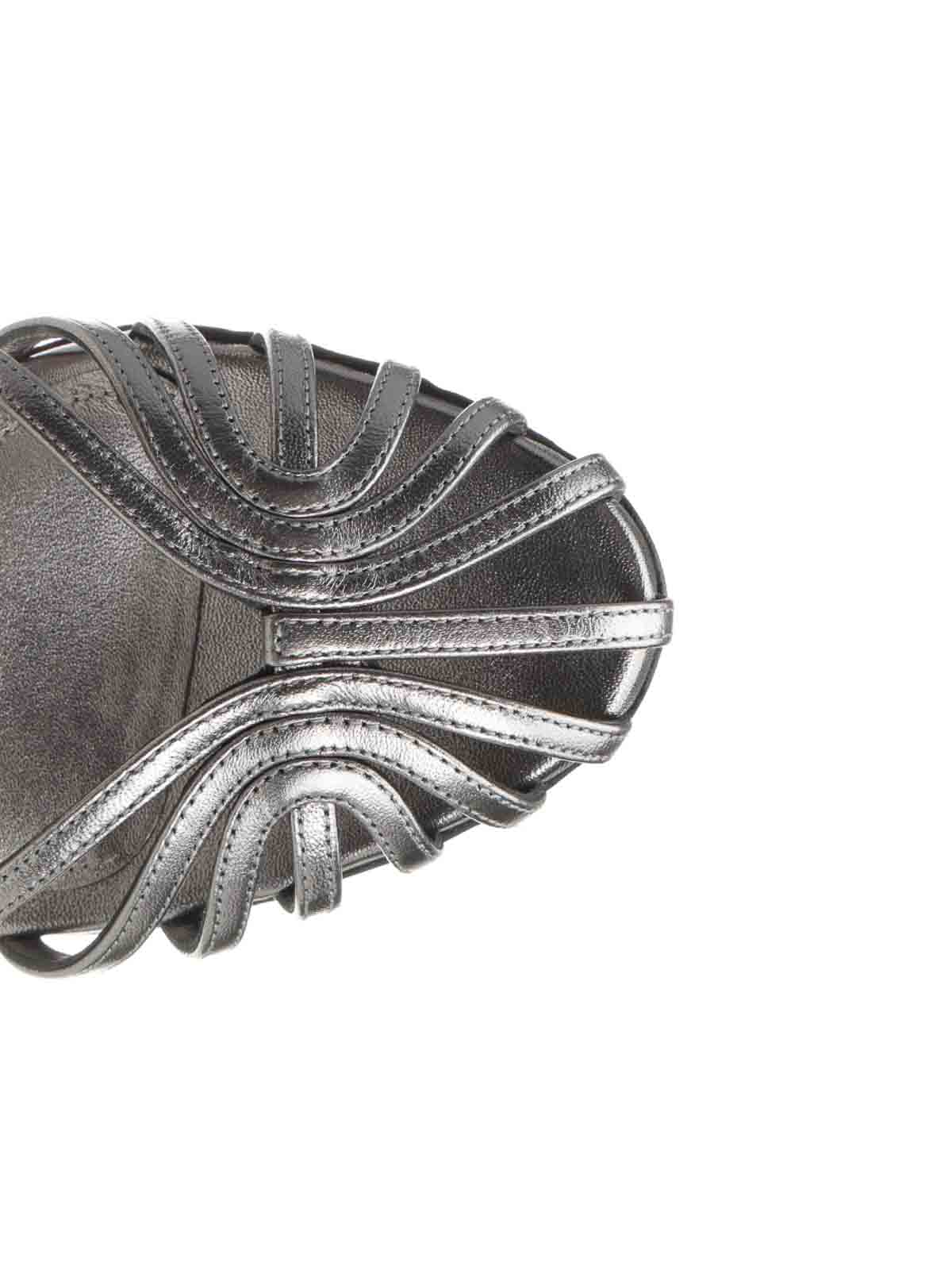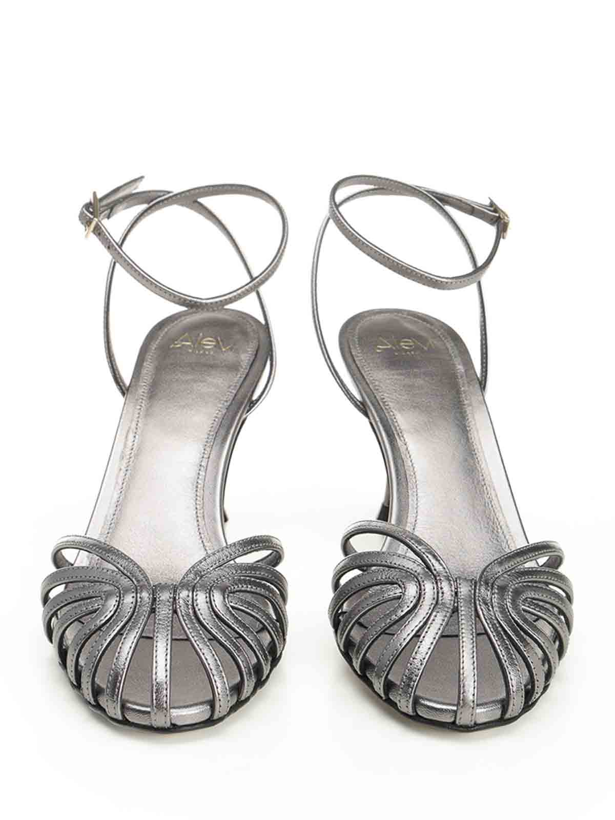 Alevのアリーケージサンダル。つま先にはお揃いのラッカー仕上げの細いストラップが付いており、クロスアンクルストラップには小さなサイドバックルが付いています