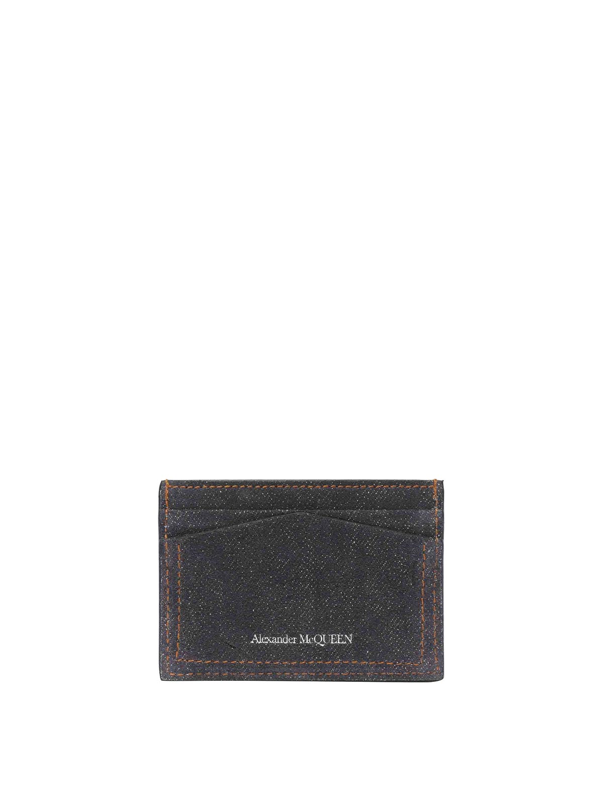 アレキサンダー・マックイーンのデニム、ブルー、スカルデニム、カードホルダー、フロントスロットの中央フラットポケットにロゴ入り
