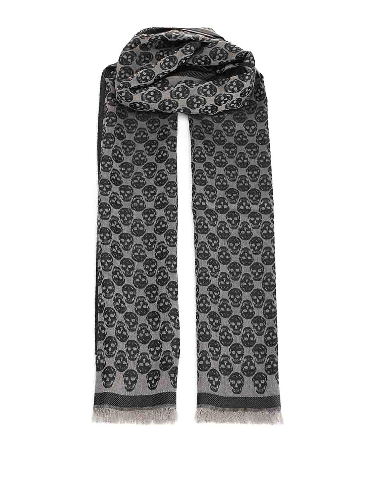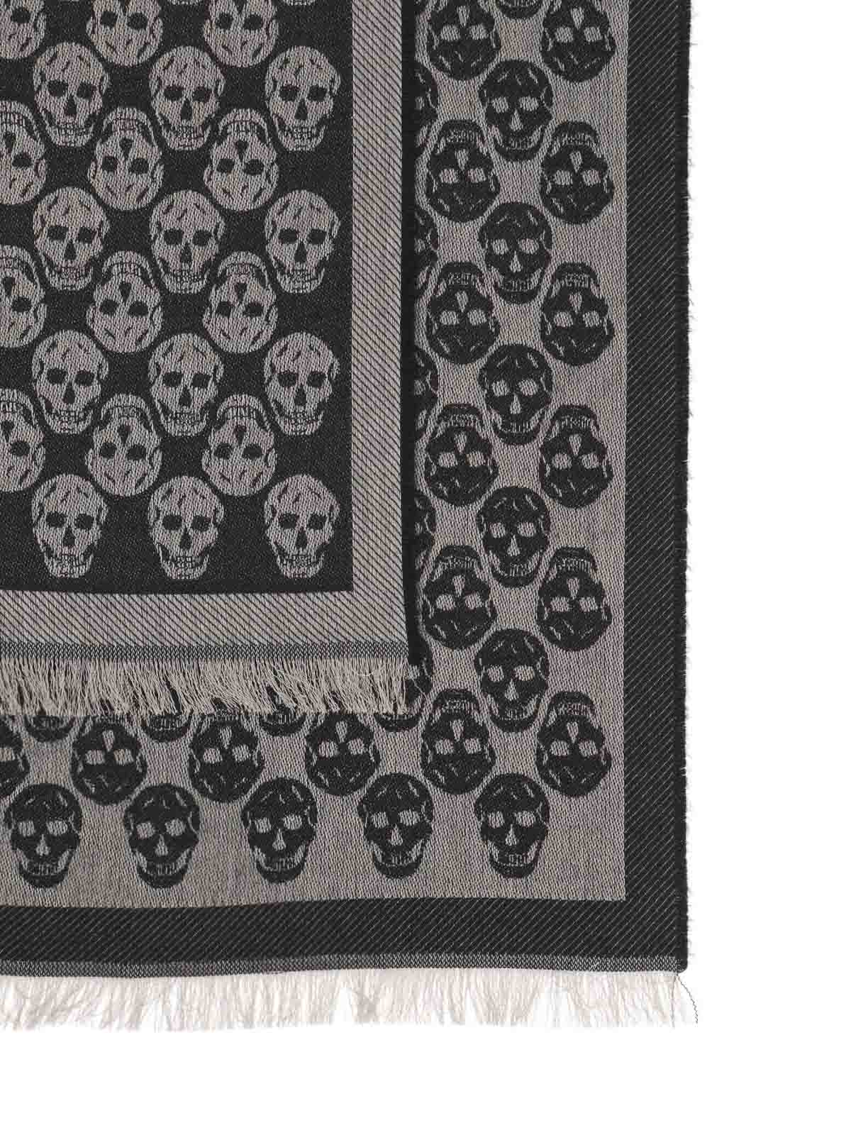 ジャカードスカルのモノグラムモチーフをあしらったウール、コットン、シルクの混紡スカーフデザイナーカラー名:ブラック