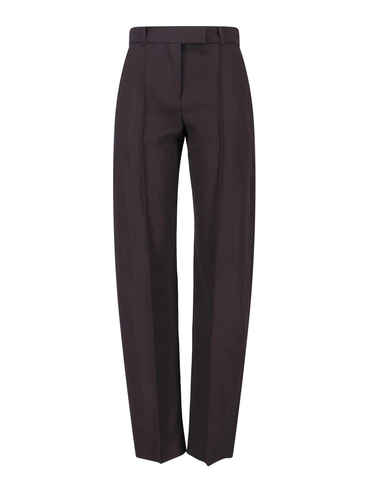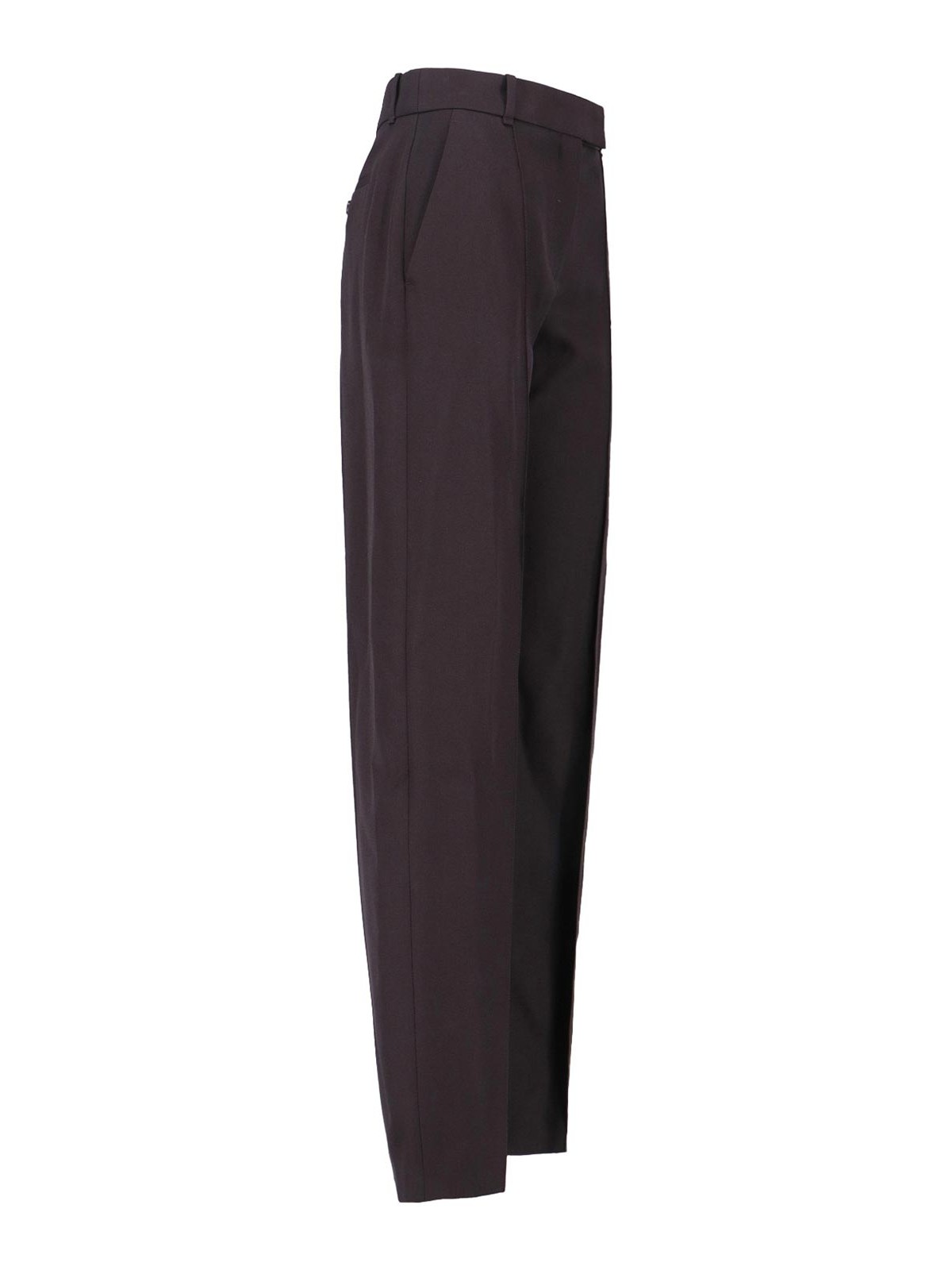 Alexander McQueen ウールパンツ、ブラウンウール、ダークシェード、ハイウエスト、ベルトループ、フックとジッパー、フロントプリーツディテール、サイドポケット2つ、バックボタンポケット2つ、ストレートレッグ。