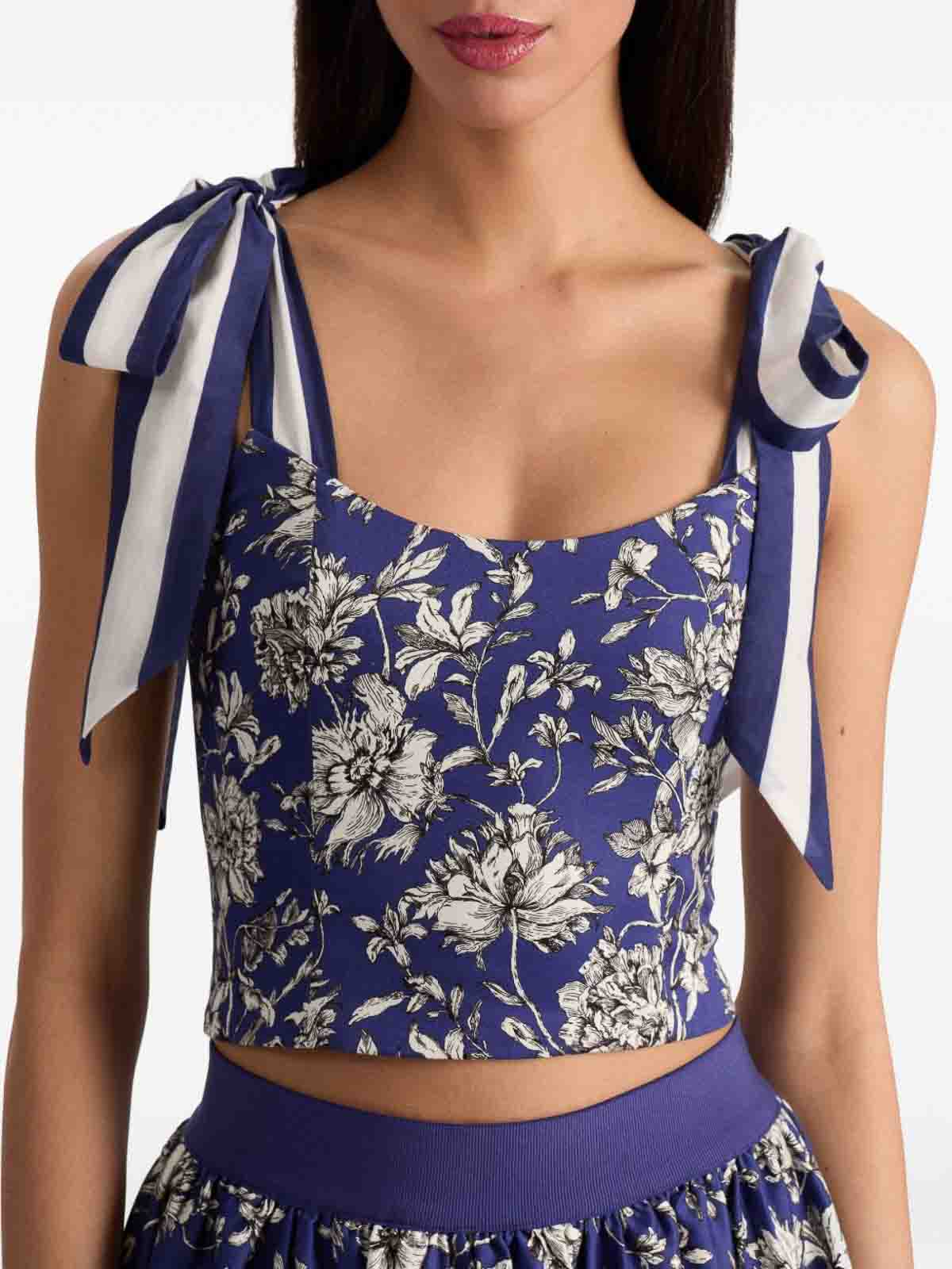ブルーフローラルプリントスクープネックタイショルダーストラップノースリーブ