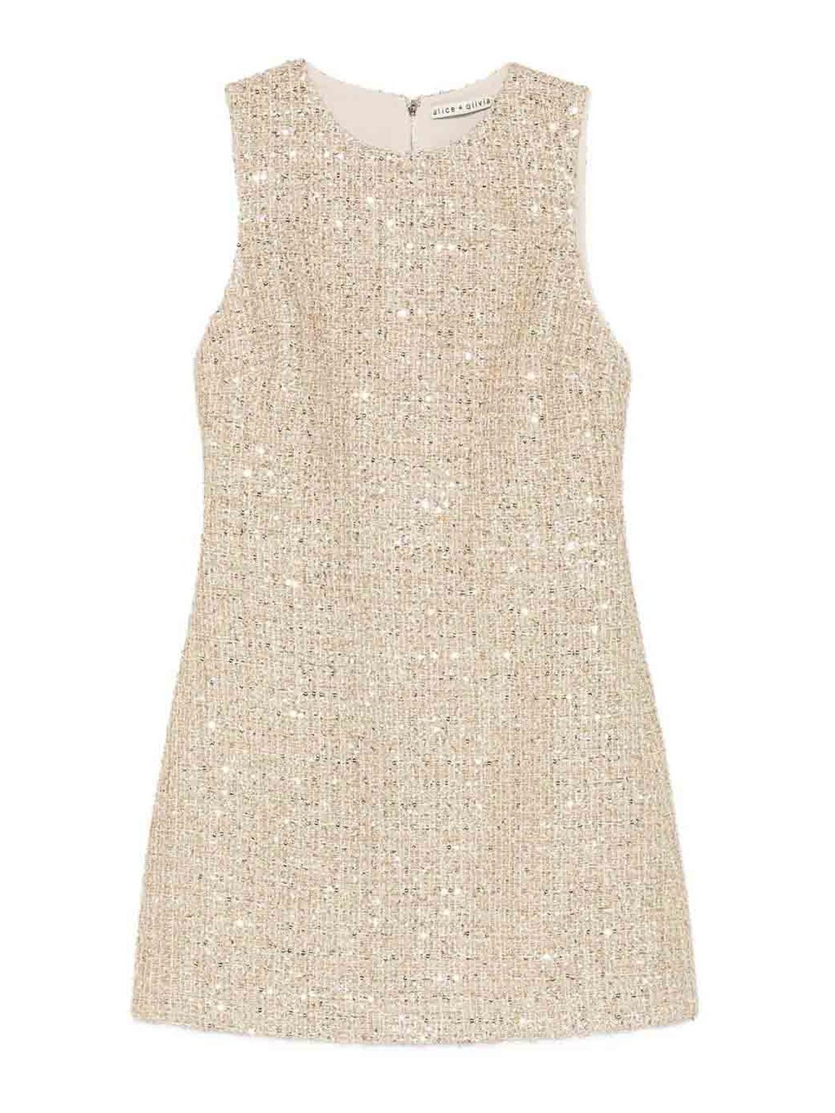 ミニシフトドレスシャンパンスパークルツイードバックジッパー