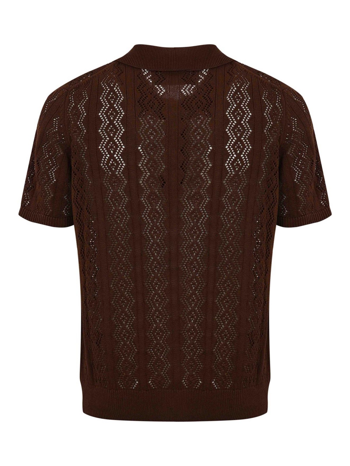 コットンヤーンリブ編みのセミシアーデザイン半袖襟ボタンストレートヘムリラックスフィット