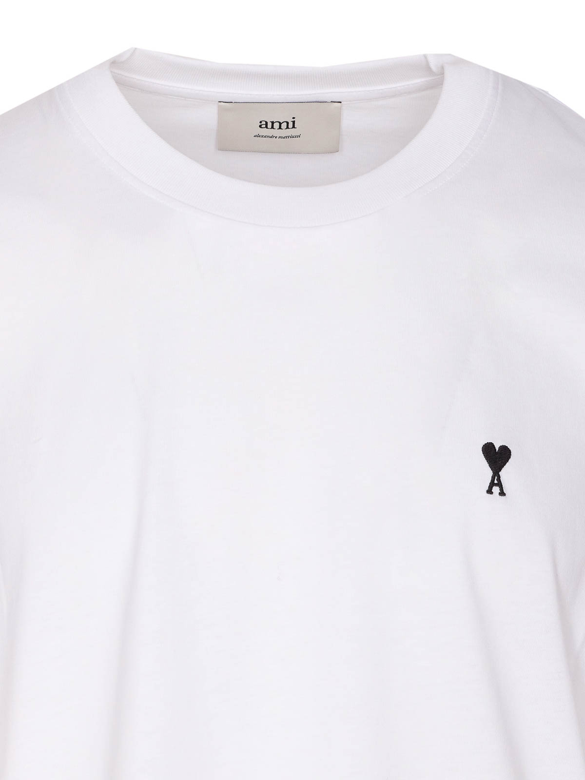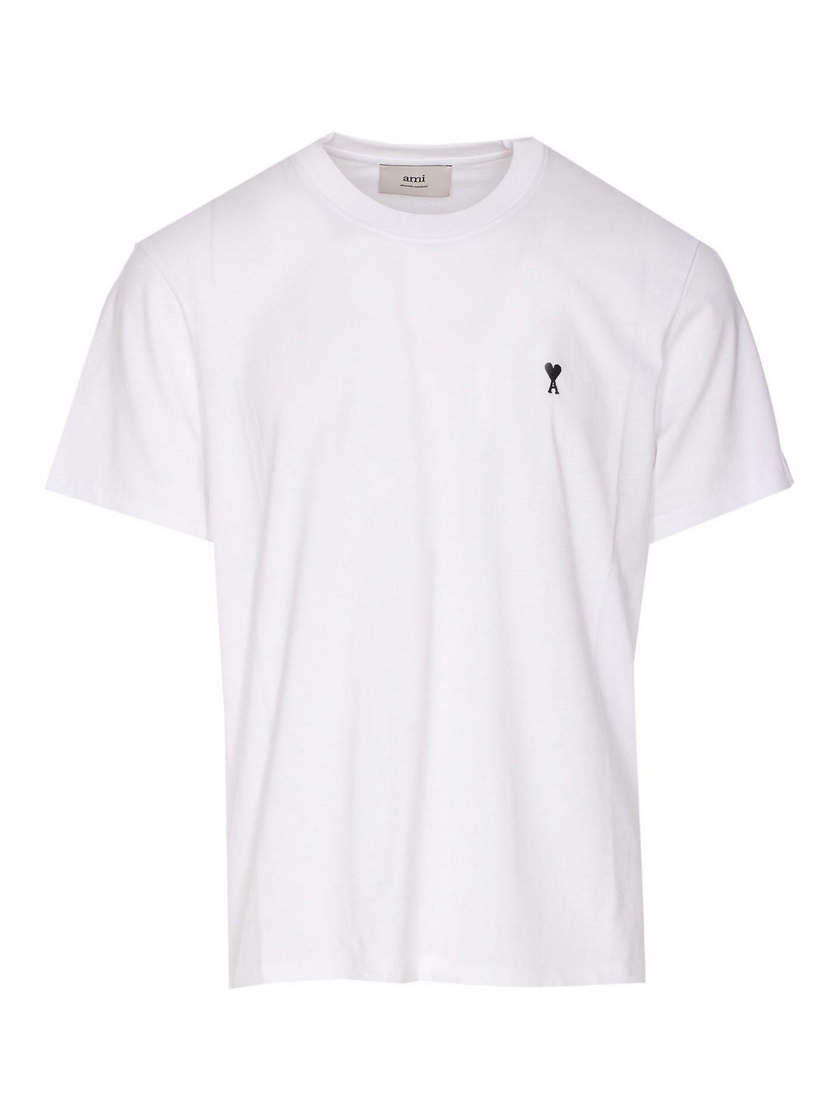 アミ・アレクサンドル・マティウッシホワイト・アミ・ド・クールTシャツ、ラウンドネック、正面刺繍ロゴ