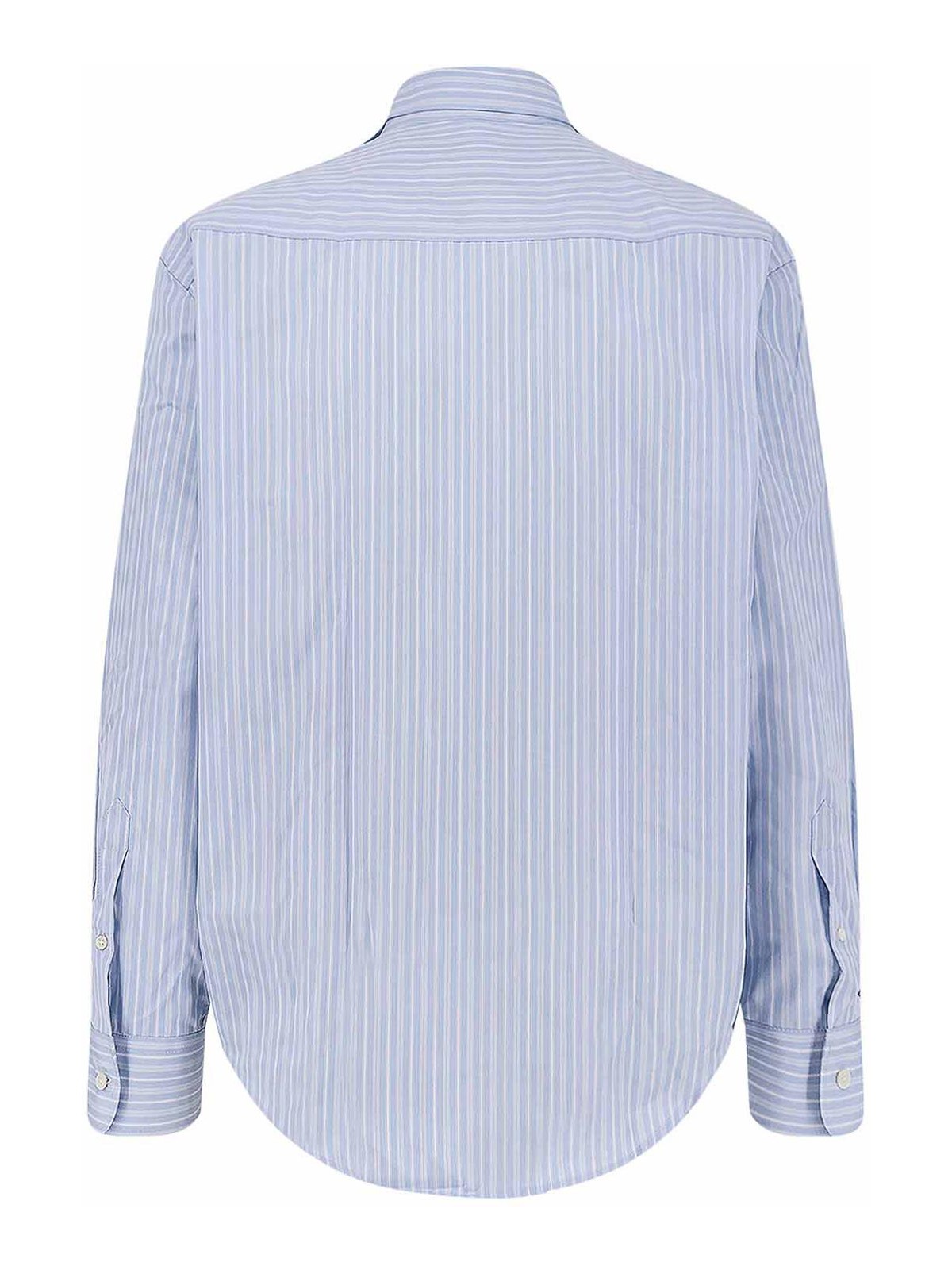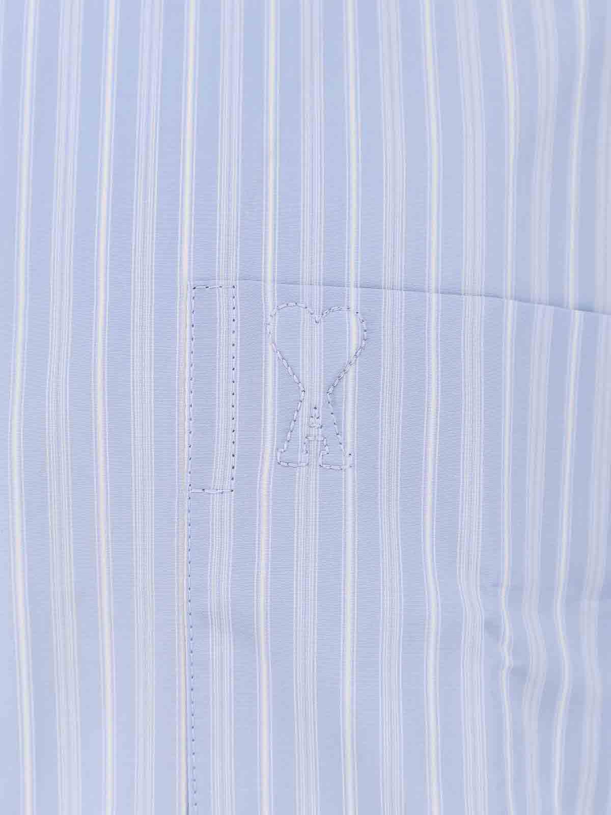 ボタン留め、ポインテッドカラー、ロングスリーブ、パッチポケット、エンボス加工のサクレクールディテール、100% コットン。
