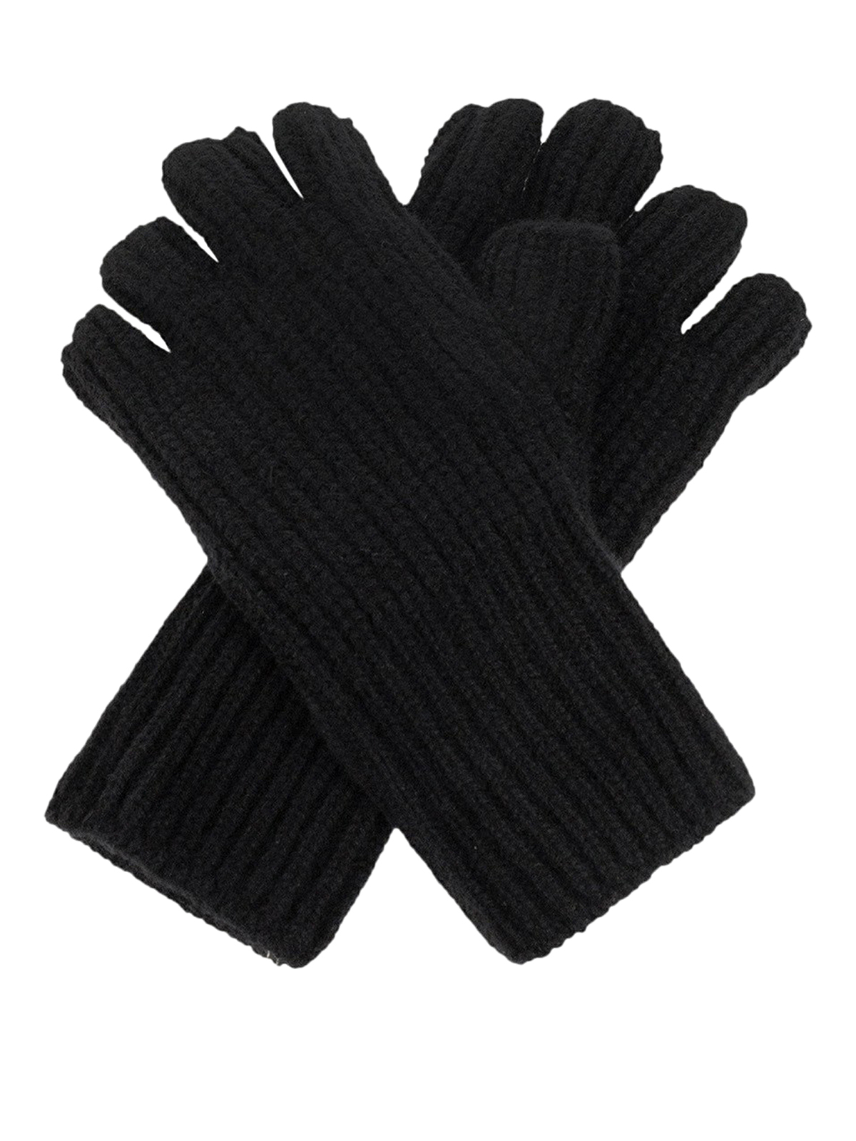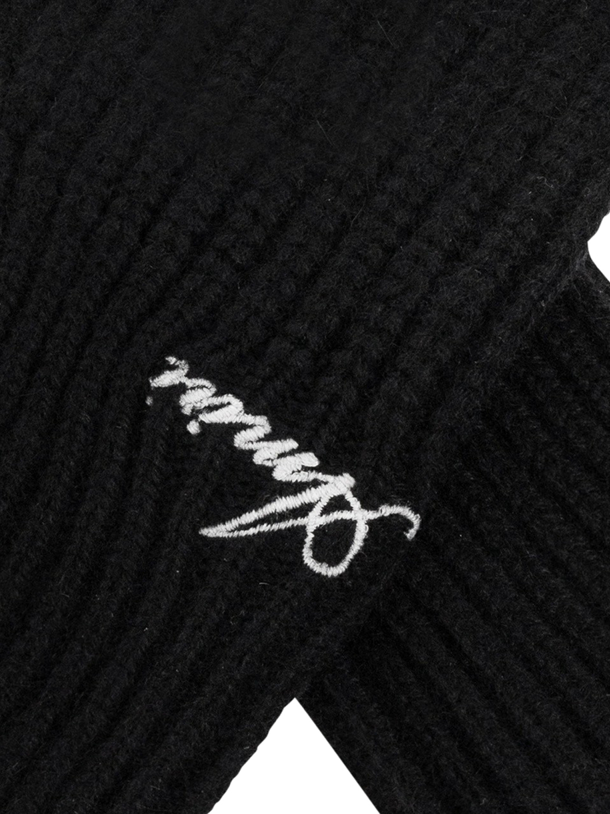 リブ編みのカシミヤ製フィンガーレスグローブ。コントラストカラーの刺繍ロゴ入り。