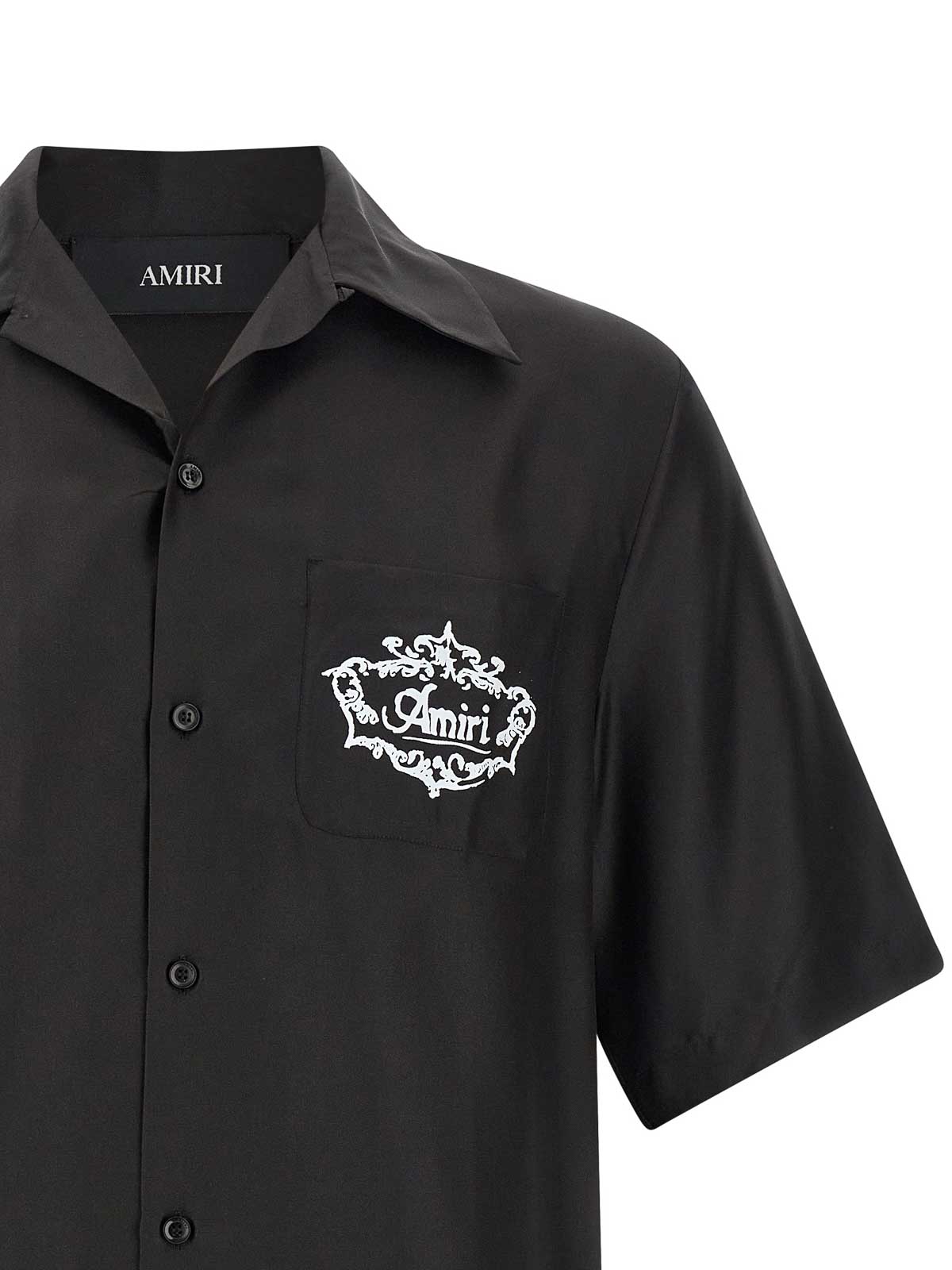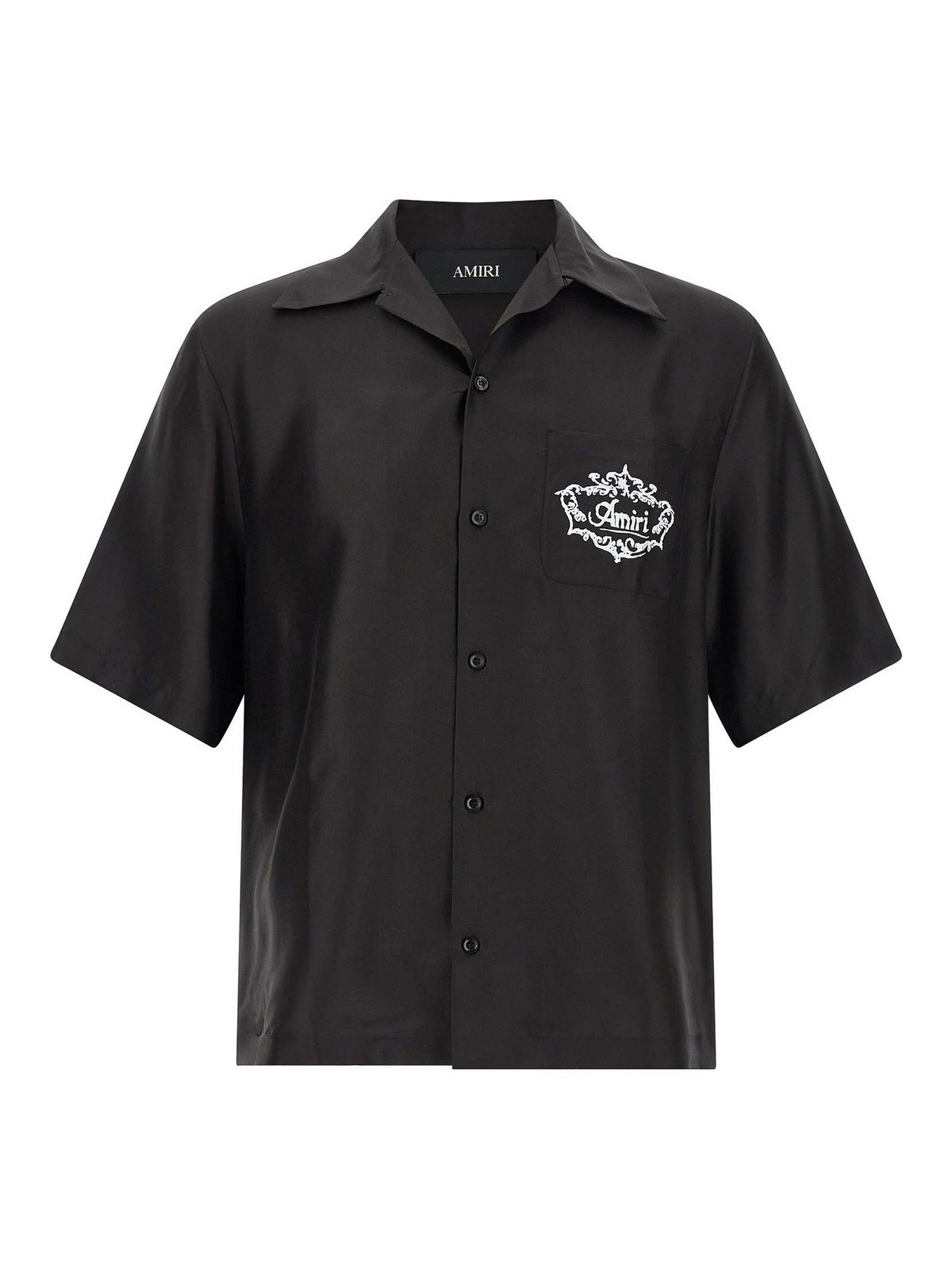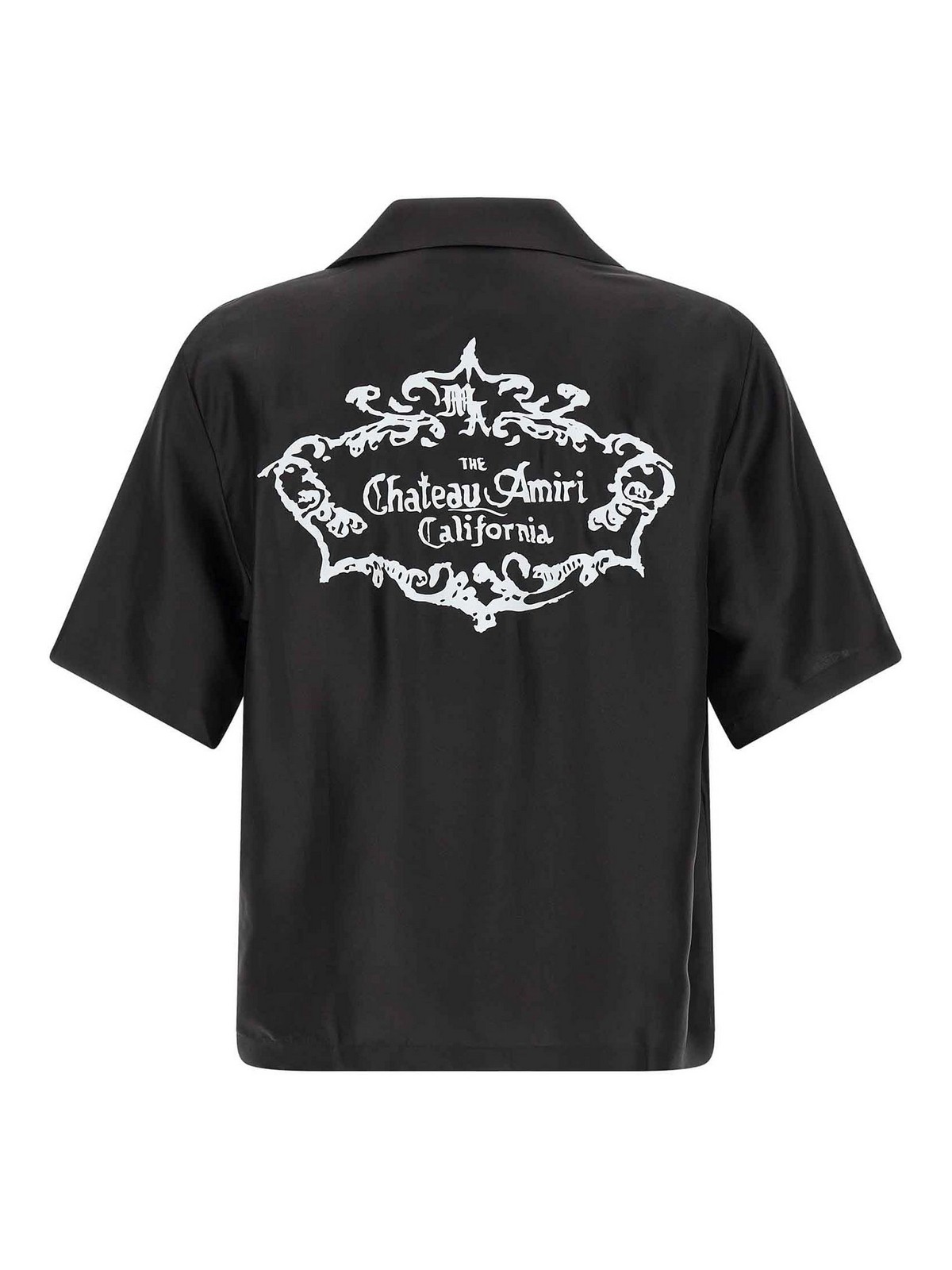 chateau crest Camp'のシルクボーリングシャツは、前面と背面にプリント、胸ポケット、前面ボタン留め、半袖です。この衣服には特別な加工が施されているため、色合いや色に意図的なバリエーションが生まれ、衣服に独自の特徴が加えられています。