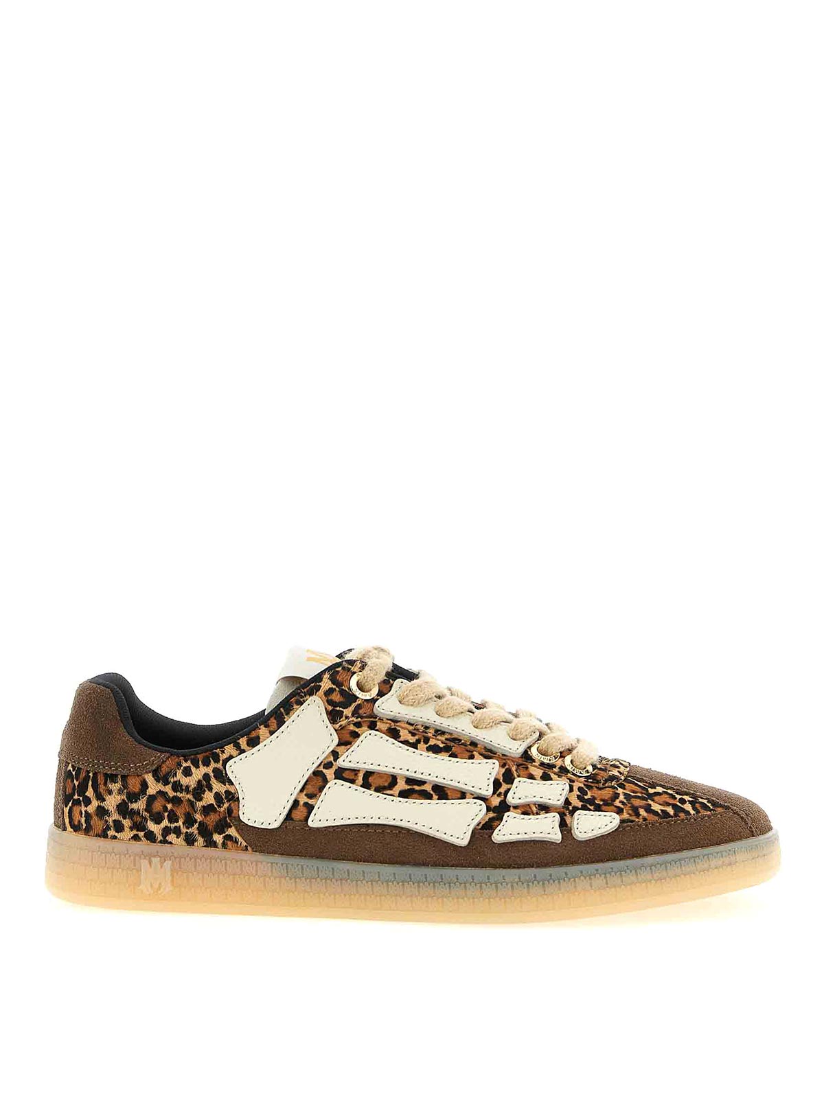 レオパードパシフィックボーンズのレオパードプリントスエードとポニーヘアスニーカー、コントラストハンマーレザーサイドパシフィックボーン、ロゴパッチを施したコントラストスエードタン、レースアップクロージャー、ヒールにエンボス加工ロゴ、「maパターン」のアイコニックなラバーソール。各ピースは細心の注意を払って作られ、本質的にユニークです。アートワークのわずかな違いは、印刷プロセスの自然な結果ですそしてこの製品の個性に貢献しています。