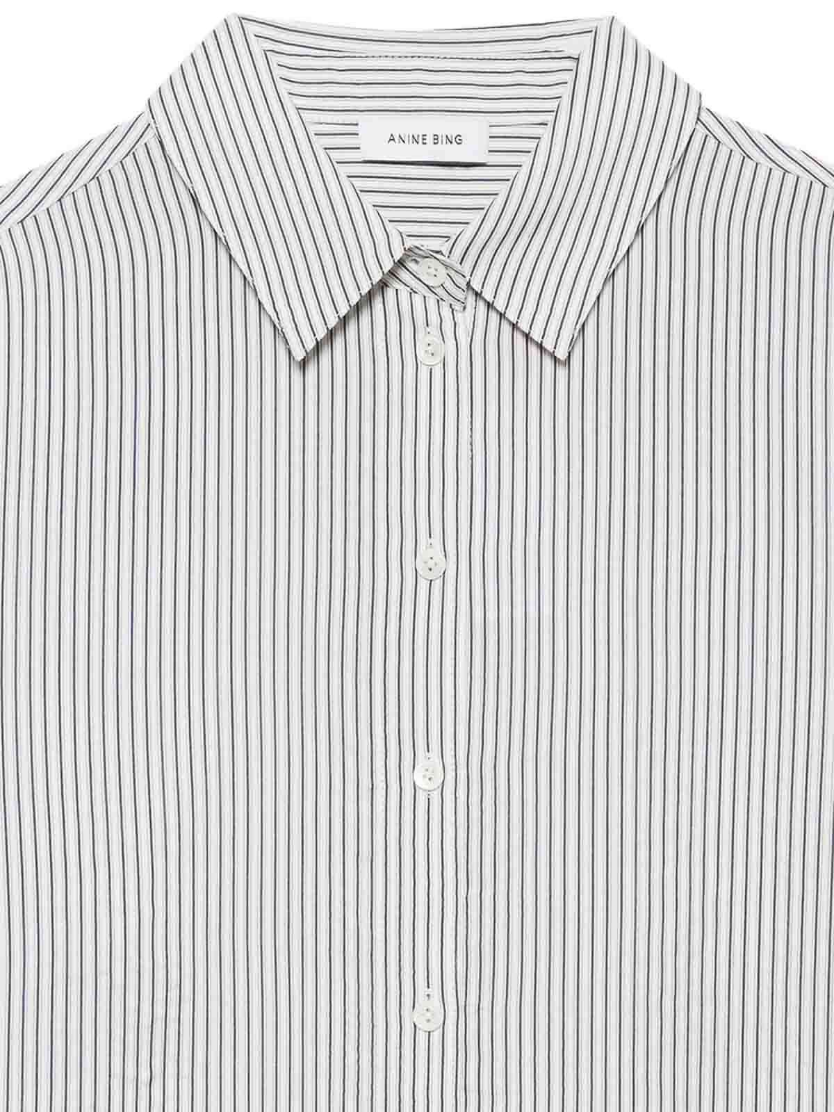 ホワイトとネイビーの縦縞ボタン長袖クラシックカラー