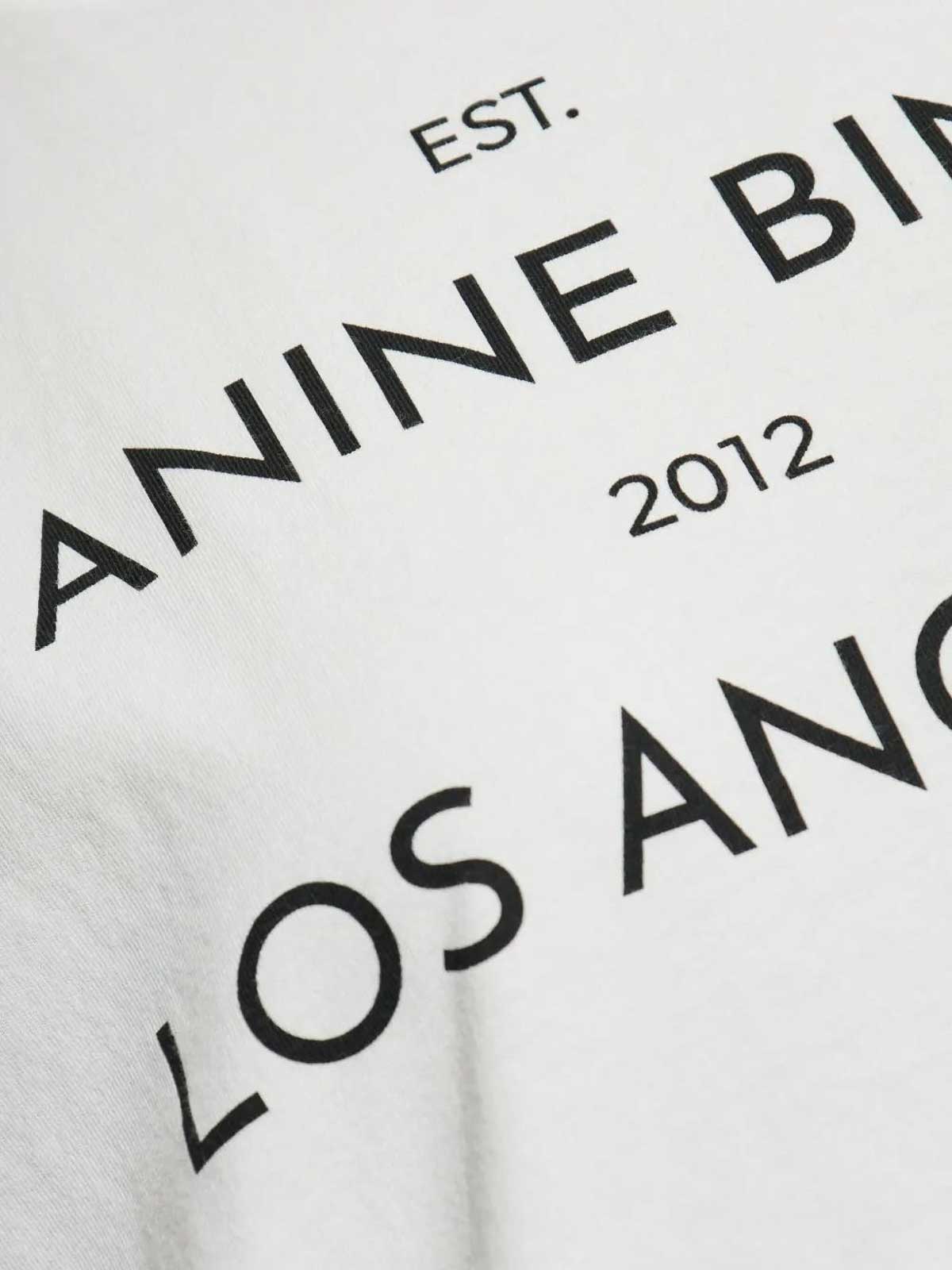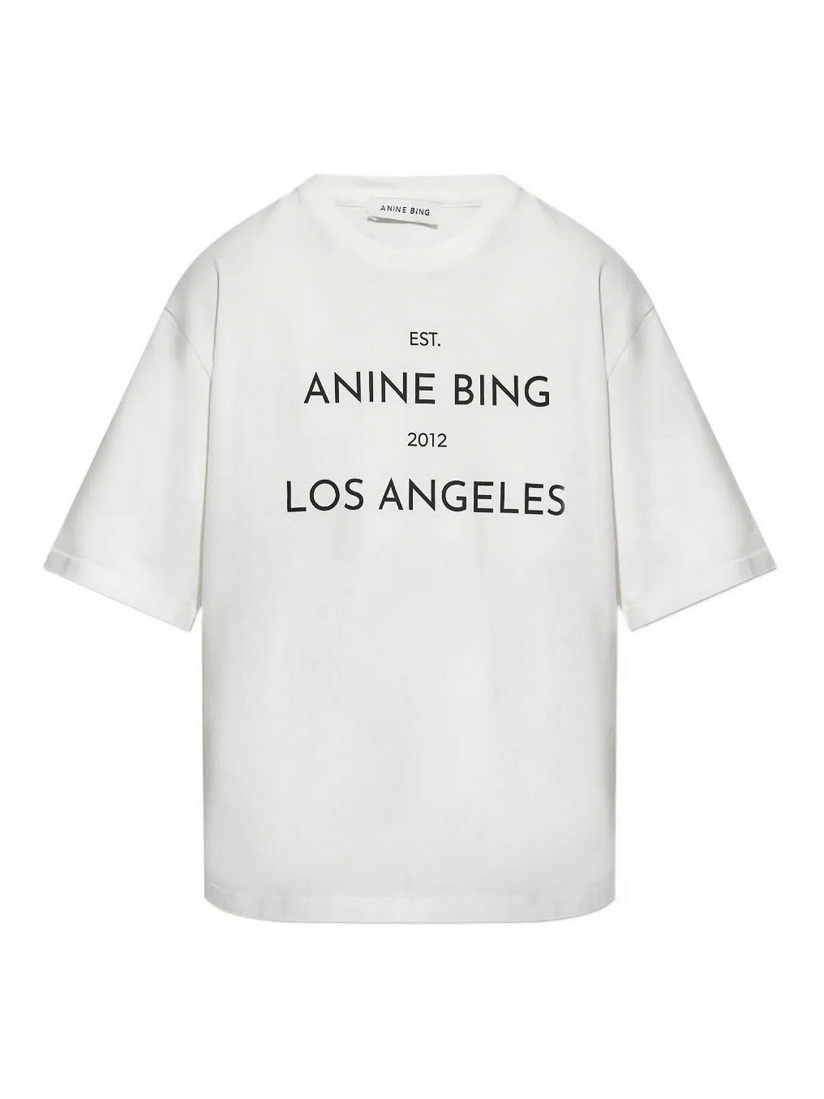 ホワイト、フロントロゴディテール、クルーネック、ドロップショルダー、ショートスリーブ