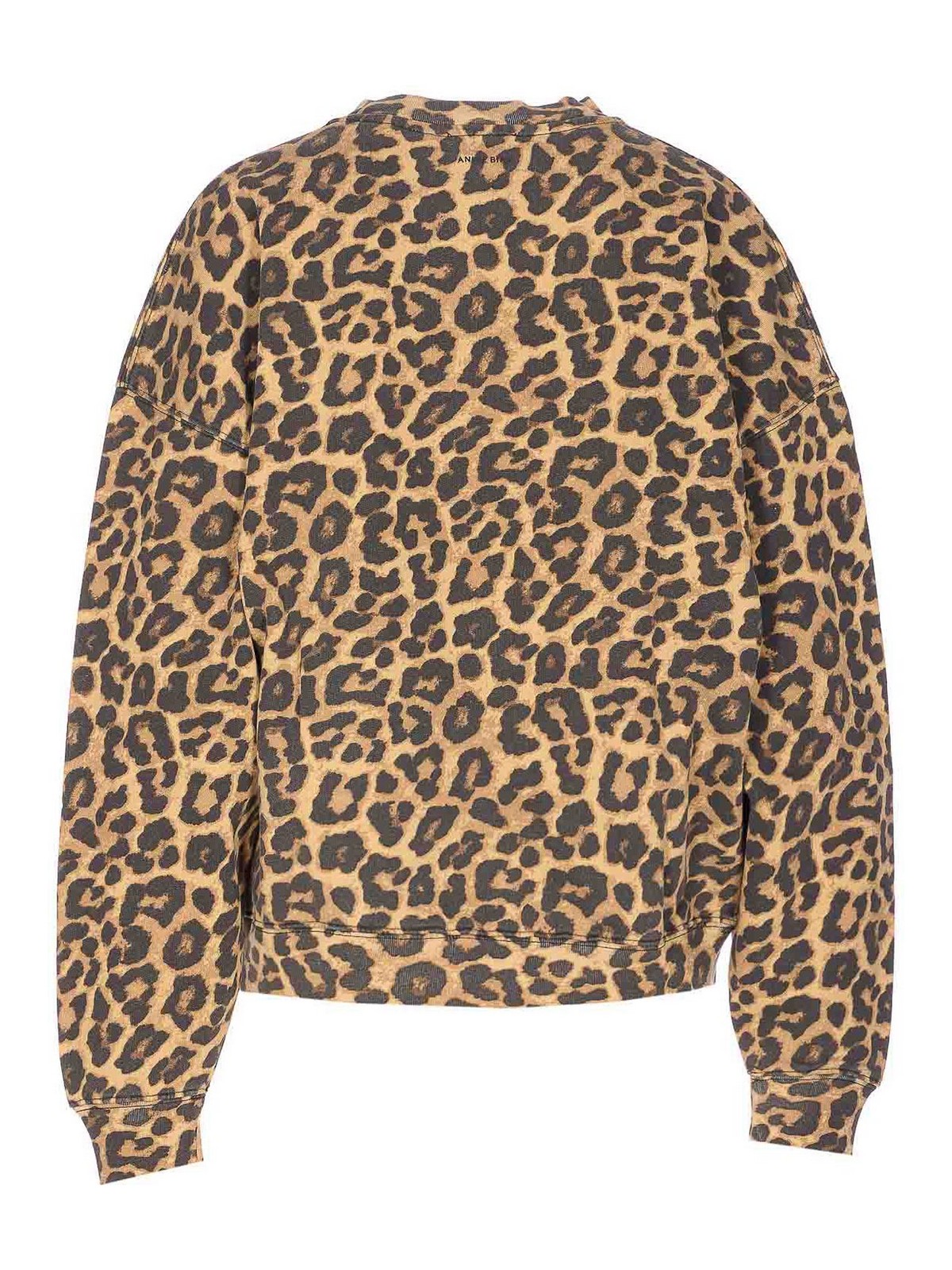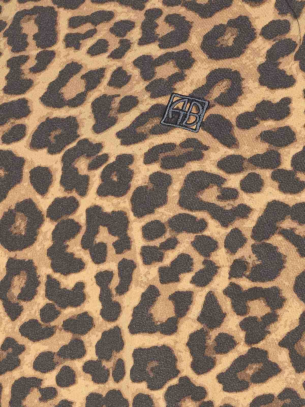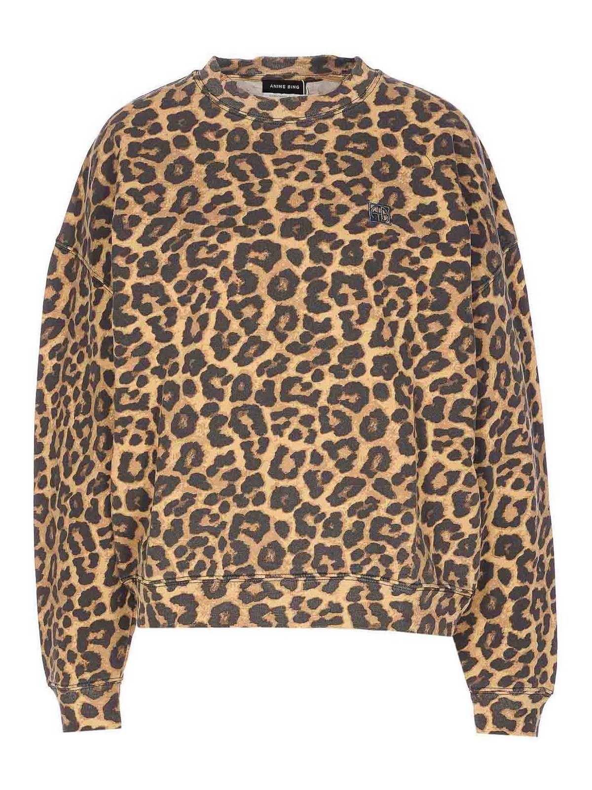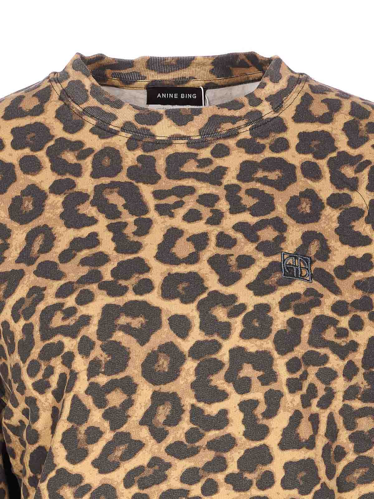 Anine Bing Miles スウェットシャツ、クルーネック、ロングスリーブ、レオパードプリント、前面にロゴ刺繍