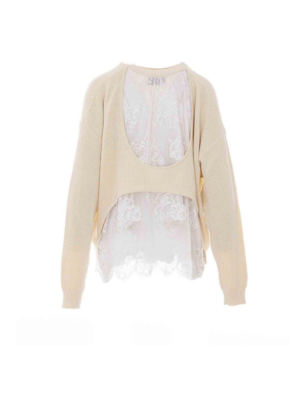 Aniye by fairy milk White Lydia プルオーバー、クルーネック、背面にレースディテール、リブ付き