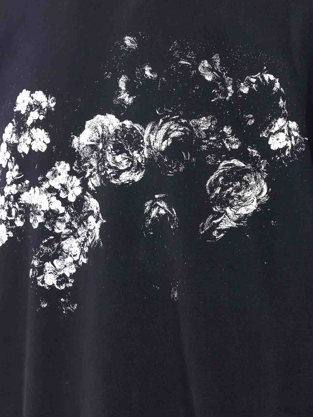Ann demulemester ブラックバルディコンフォートパーカー、レースディテール付きフード、下部にレースディテール、花柄、長袖、背面にミニプリントロゴ