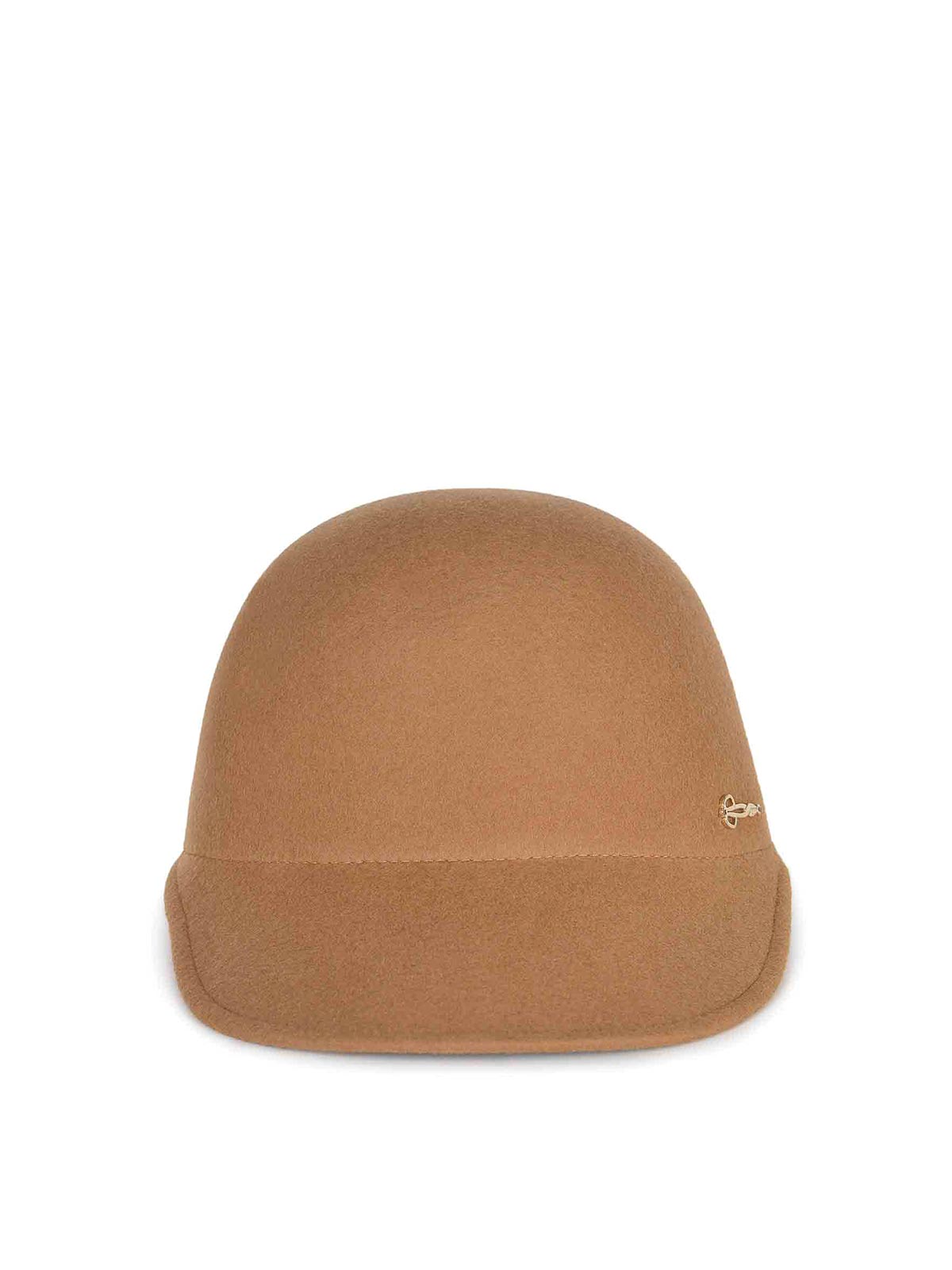 キャメルカラーのウール製Catarzi「anversa」ハット、サイドディテールはシルバーで刺繍、イタリア製ウール100%