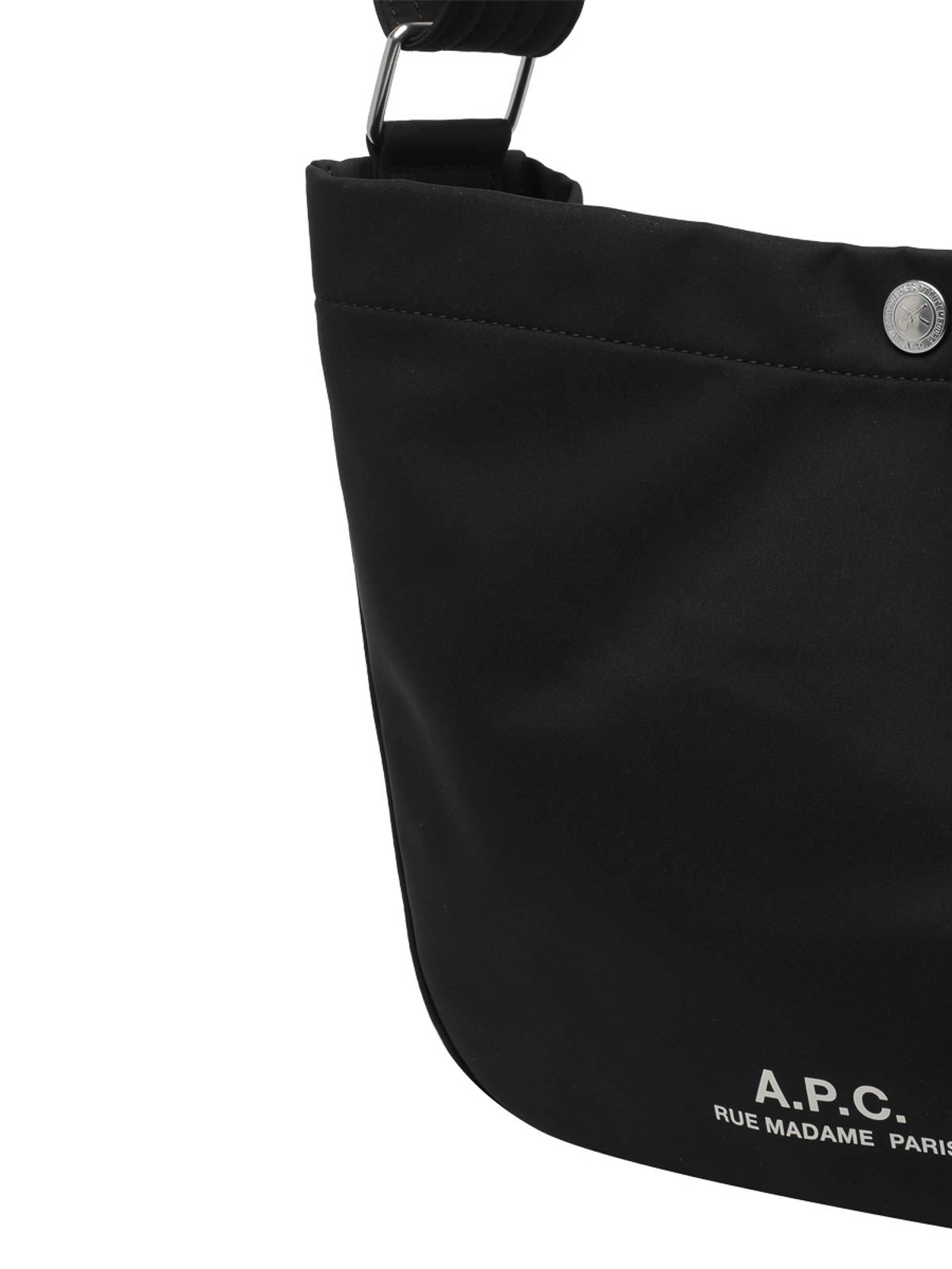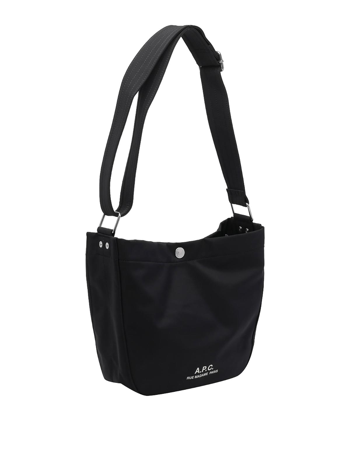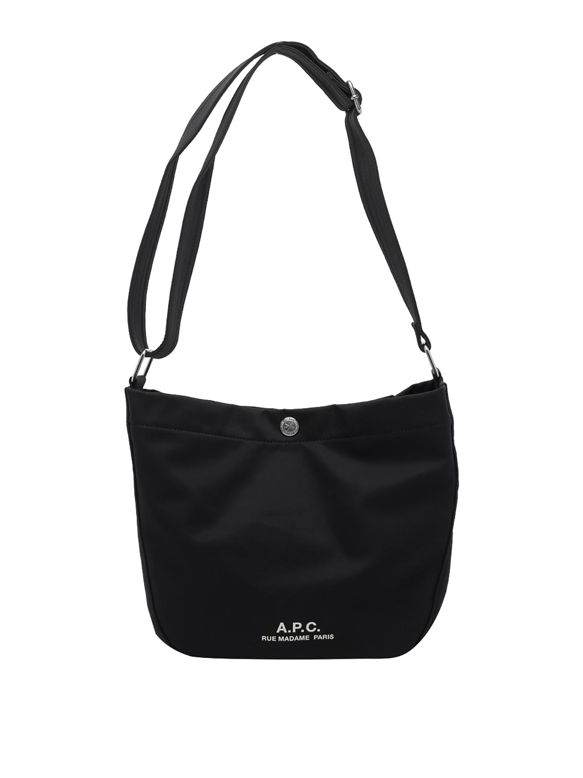 A.P.C. ブラック besace ジャーナルショルダーバッグ、クリップクロージャー、内側にオープンポケット、調節可能なショルダーストラップ、ロゴ
