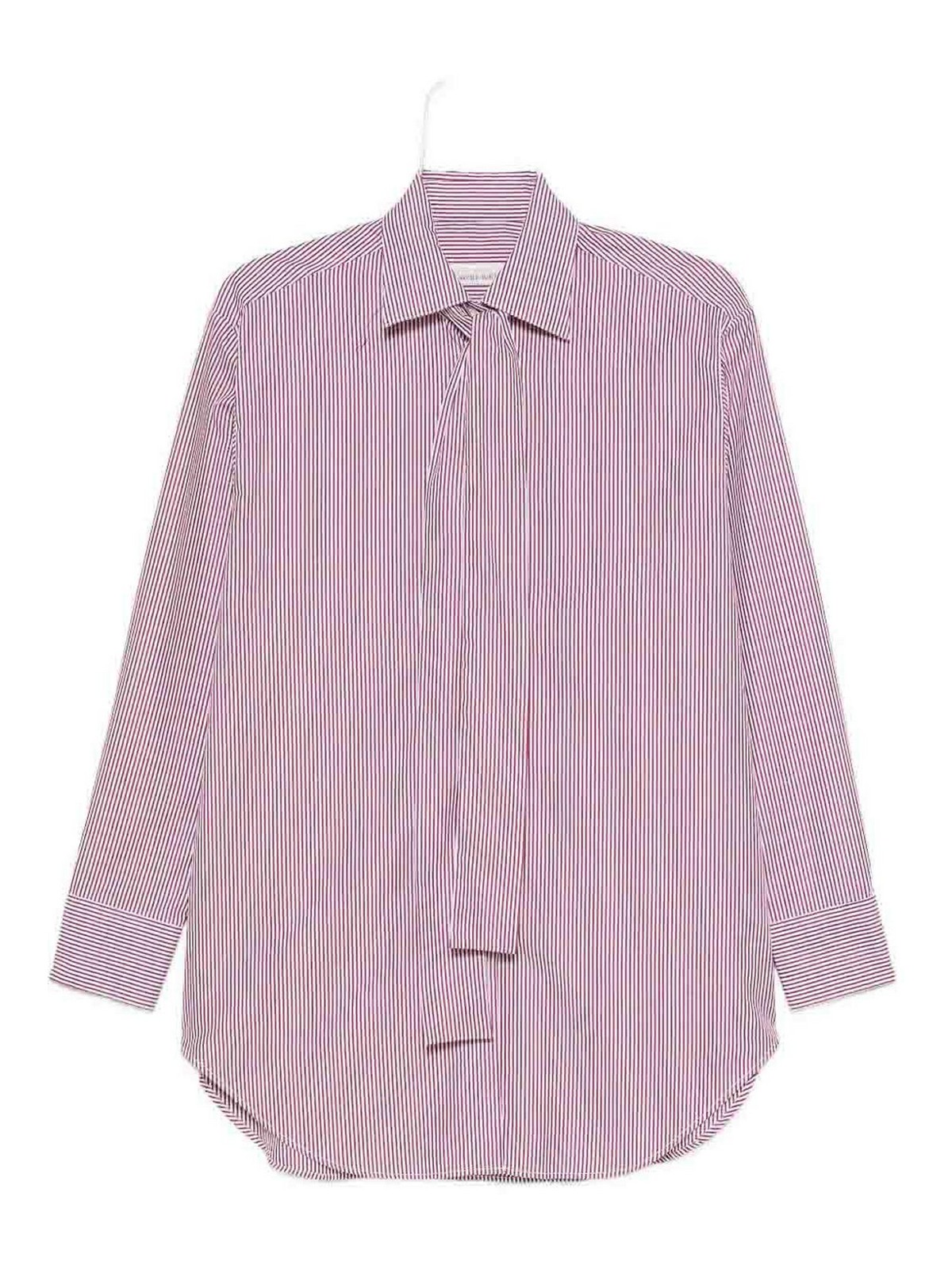 ホワイトストライプネクタイボタン付きカフスロングスリーブクラシックカラー