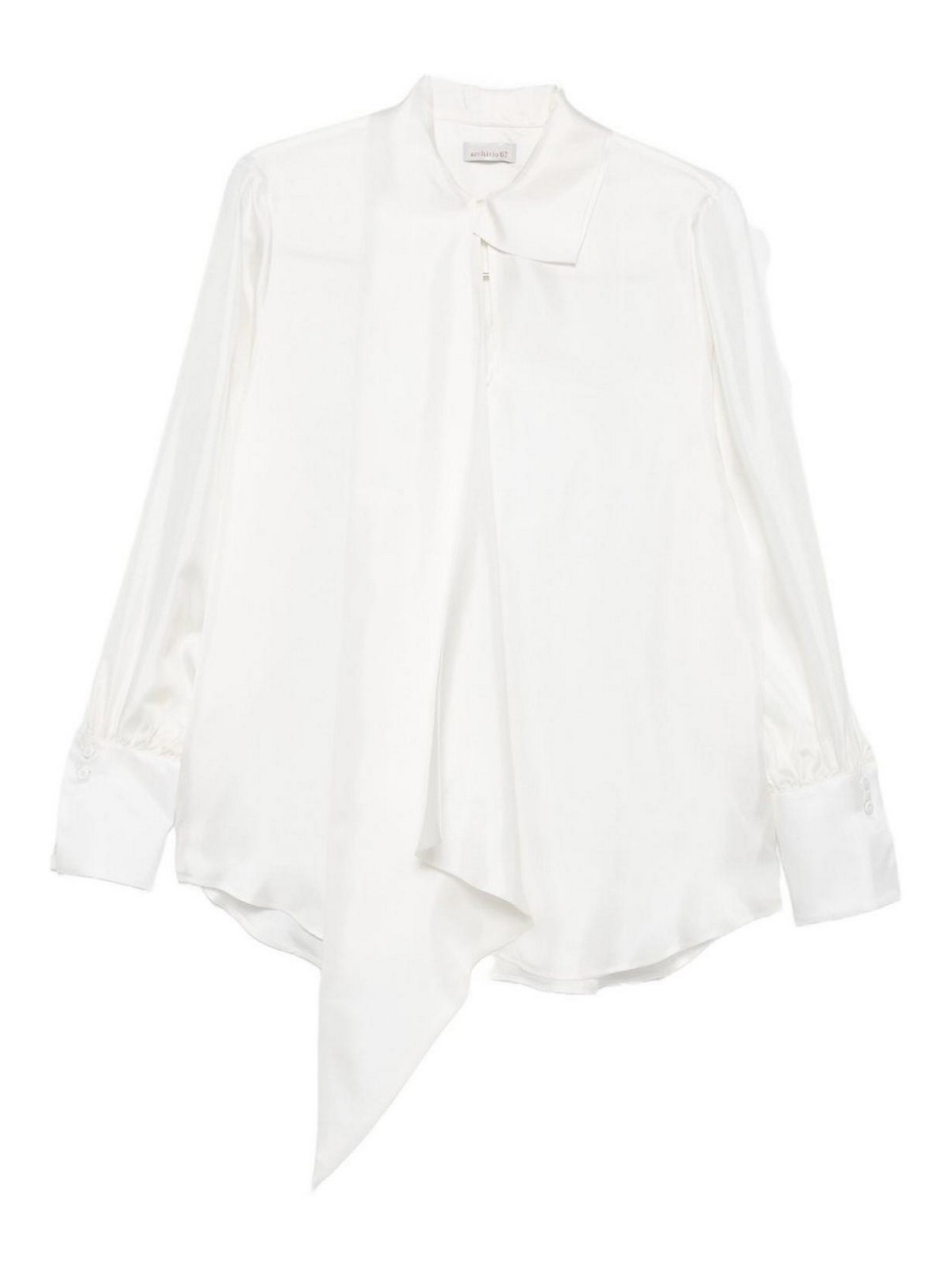 ホワイトアシンメトリーロングスリーブボタン付きカフス