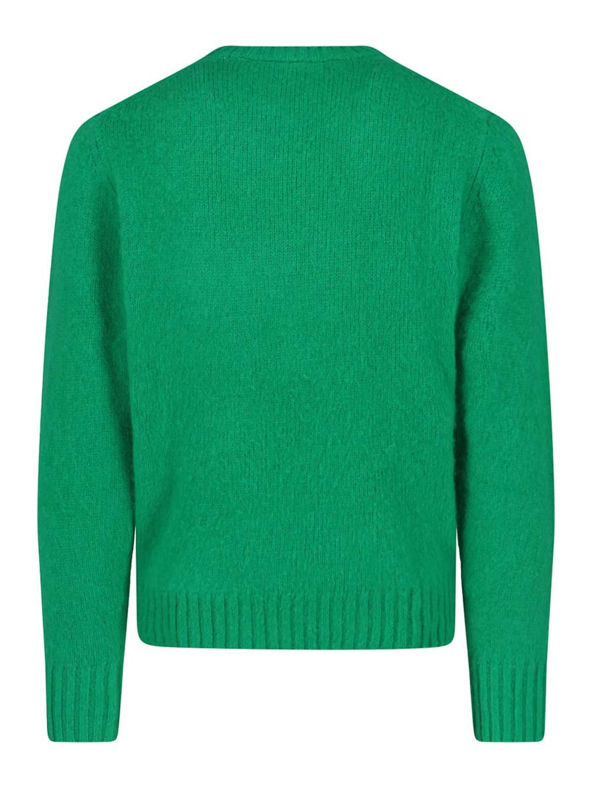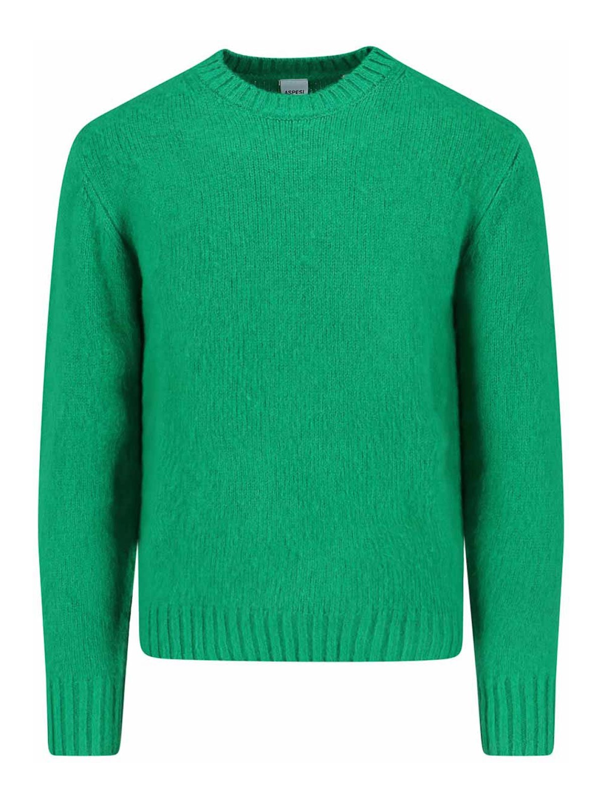 Aspesi シェトランドウールセーター、グリーン、クルーネック、ロングスリーブ、リブ仕上げ、ストレートヘム。