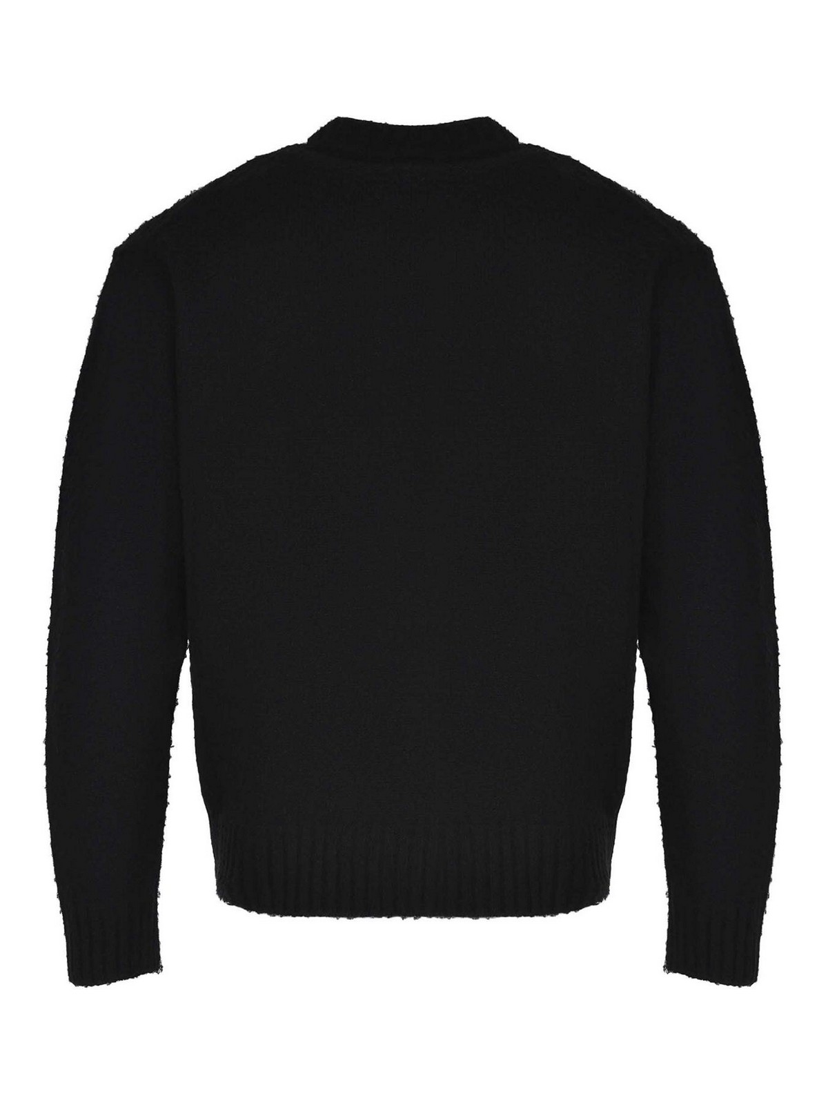 ブラックのウール混紡のアクセルアリガートセーター。リブ編みのクルーネック。長袖。リブ編みの袖口と裾。ウール 80%、ポリアミド 20%。