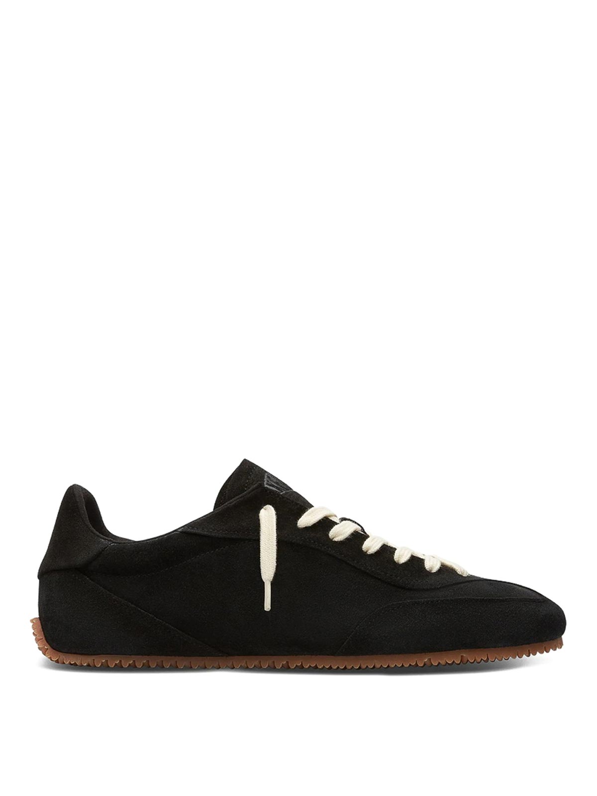 ブラックスエードアッパーレースアップファスニングフラットソールラウンドトゥガムソール