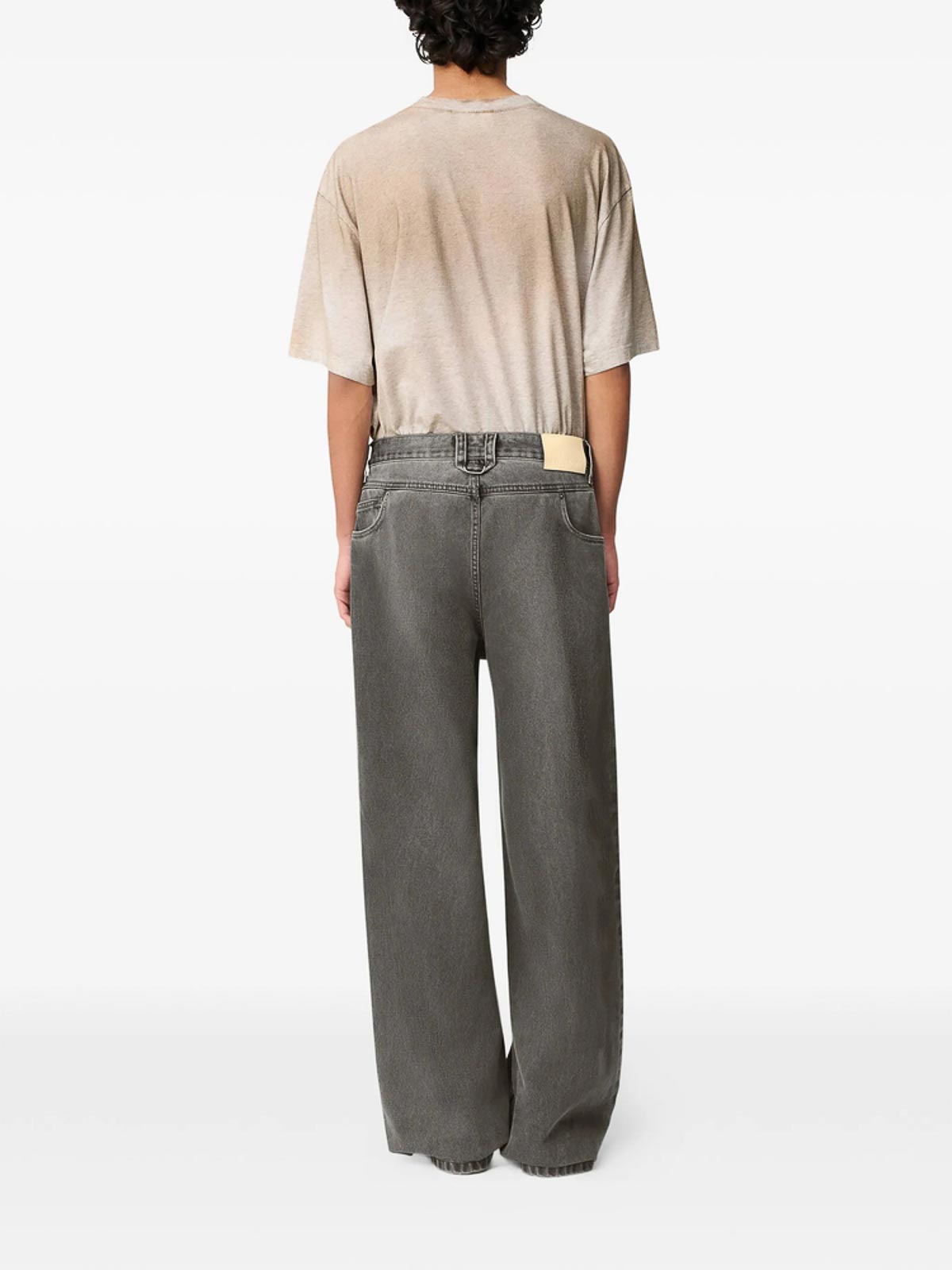 グレーコットンワイドレッグベルトループフロントパッチポケット
