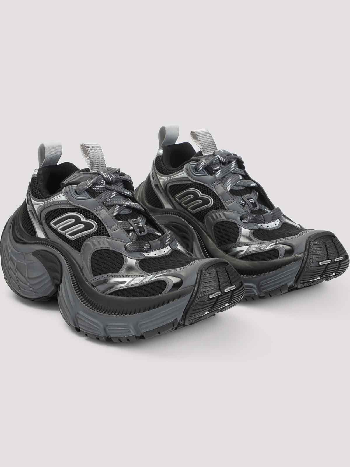 Balenciaga ブラック XL スニーカークラフトトップレース、タンにアップブラックストラップ、サイドにブラックとグレー M ロゴバックストラップグレーとブラック
