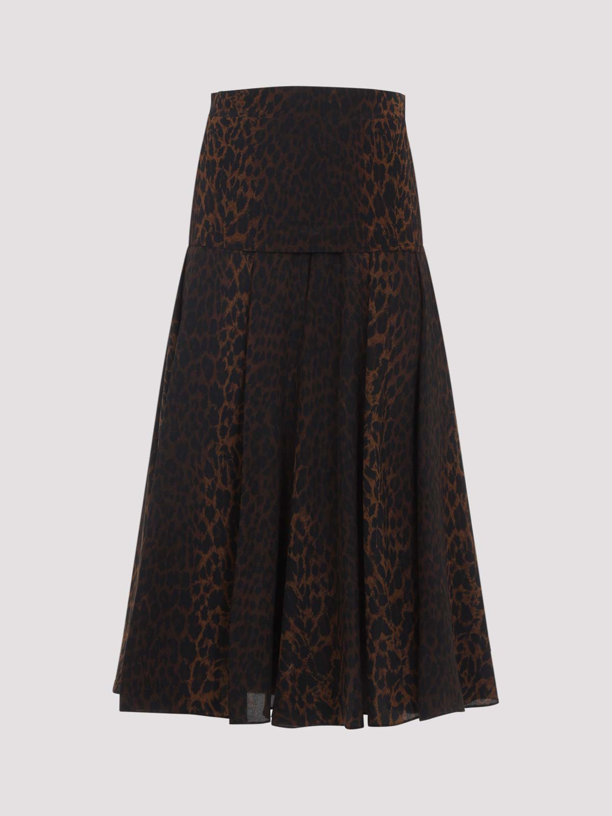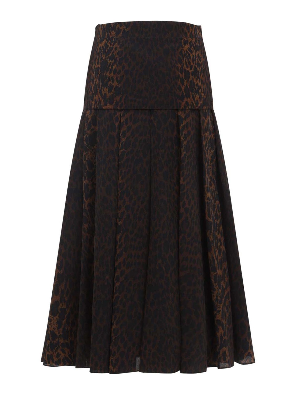 バレンシアガアニマリエゴデットミディスカート。アニマリエプリントシルク、レギュラーウエスト、プリーツデザイン、サイドファスナー。レギュラーフィット。