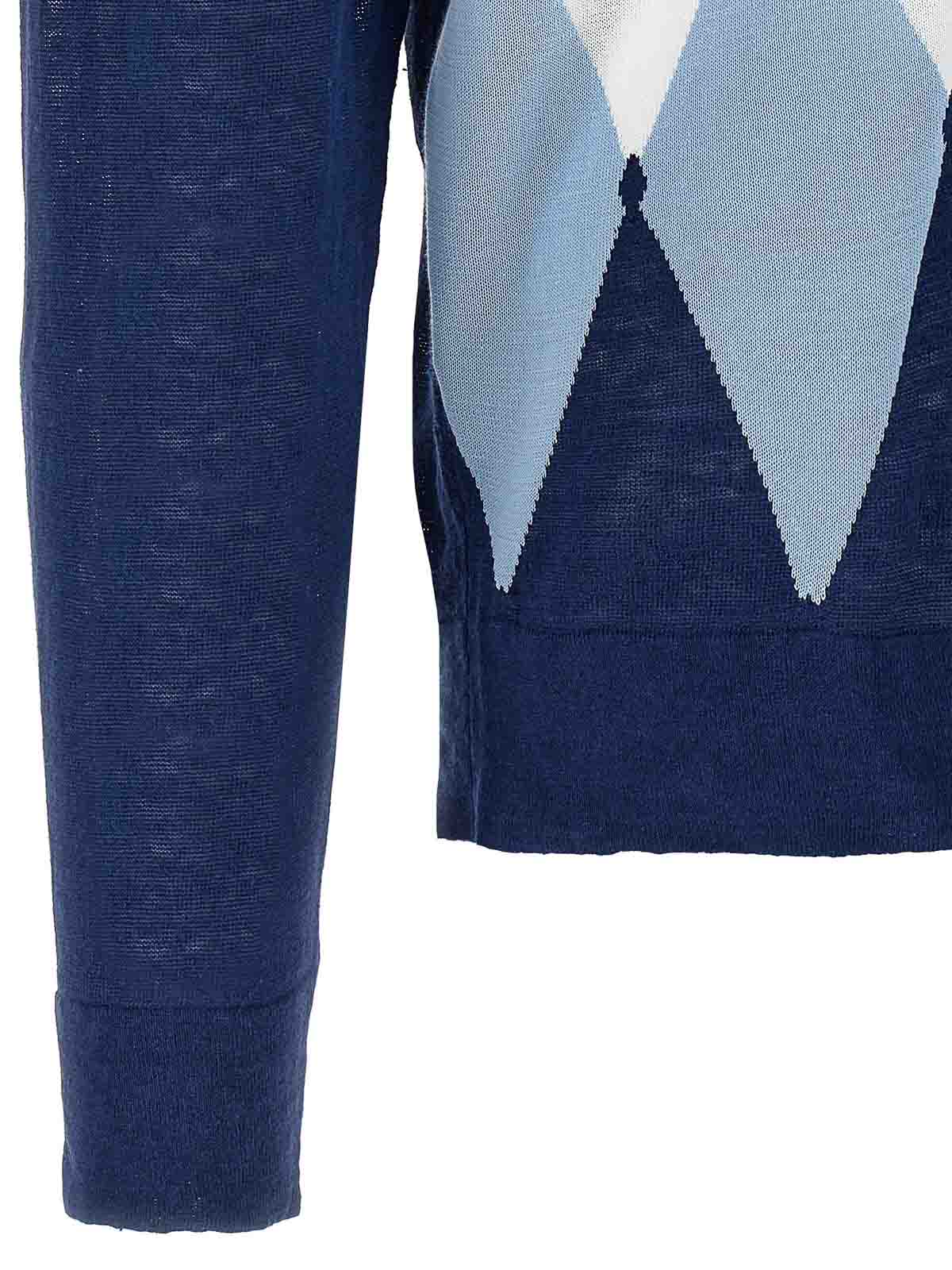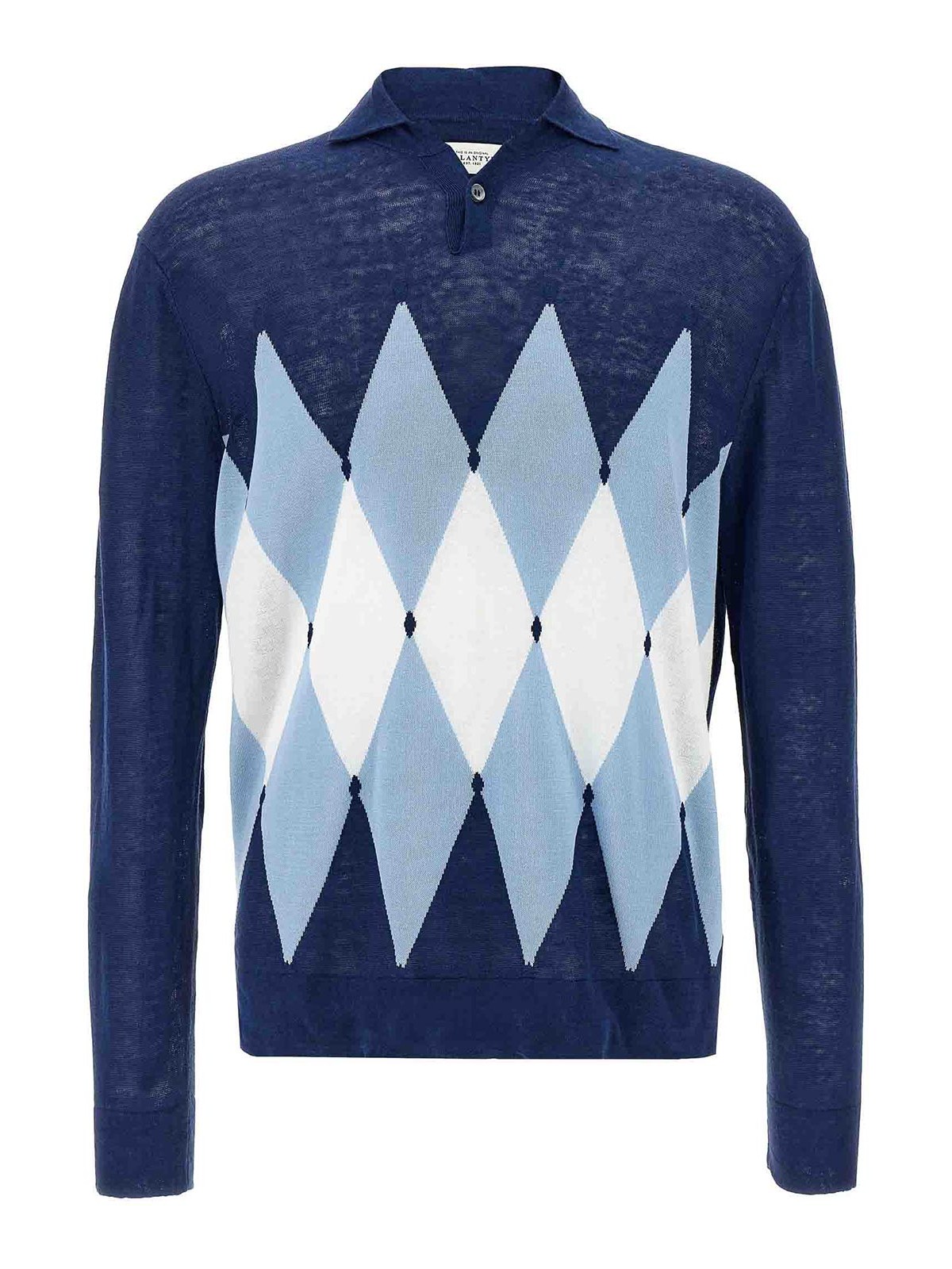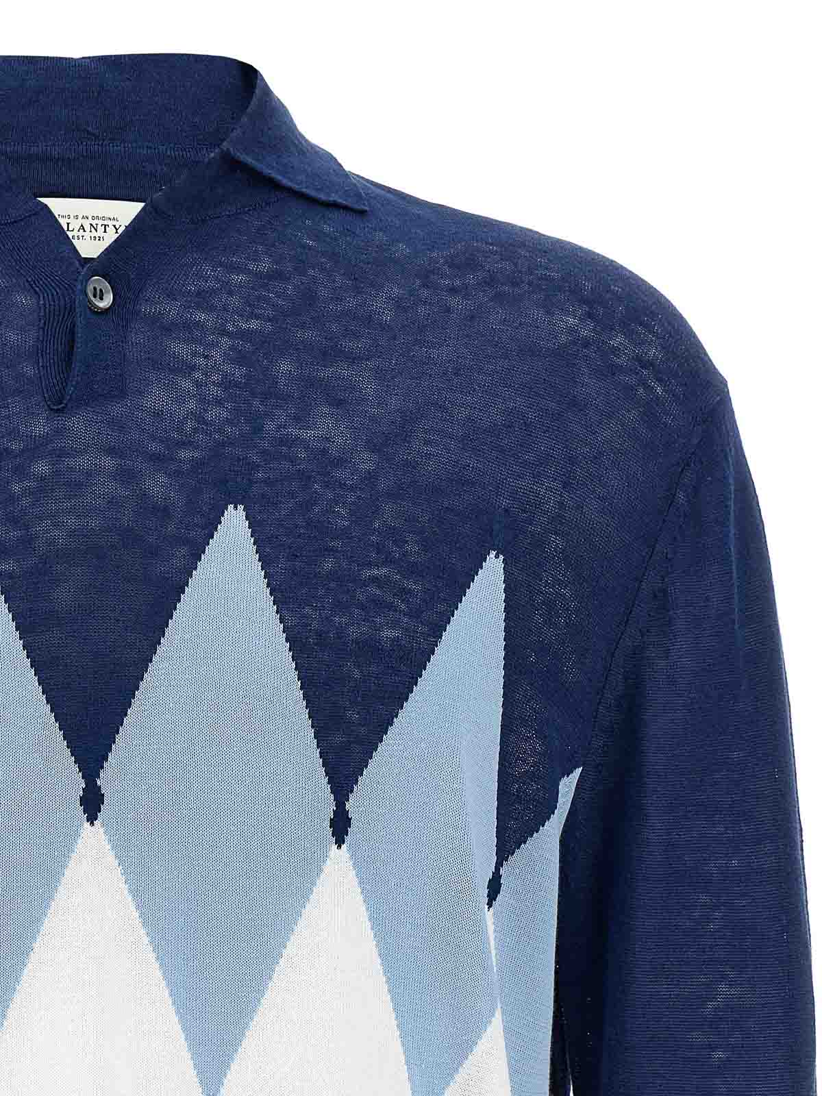 アーガイル&ポロシャツ、襟とボタン付きロングカフスリーブ