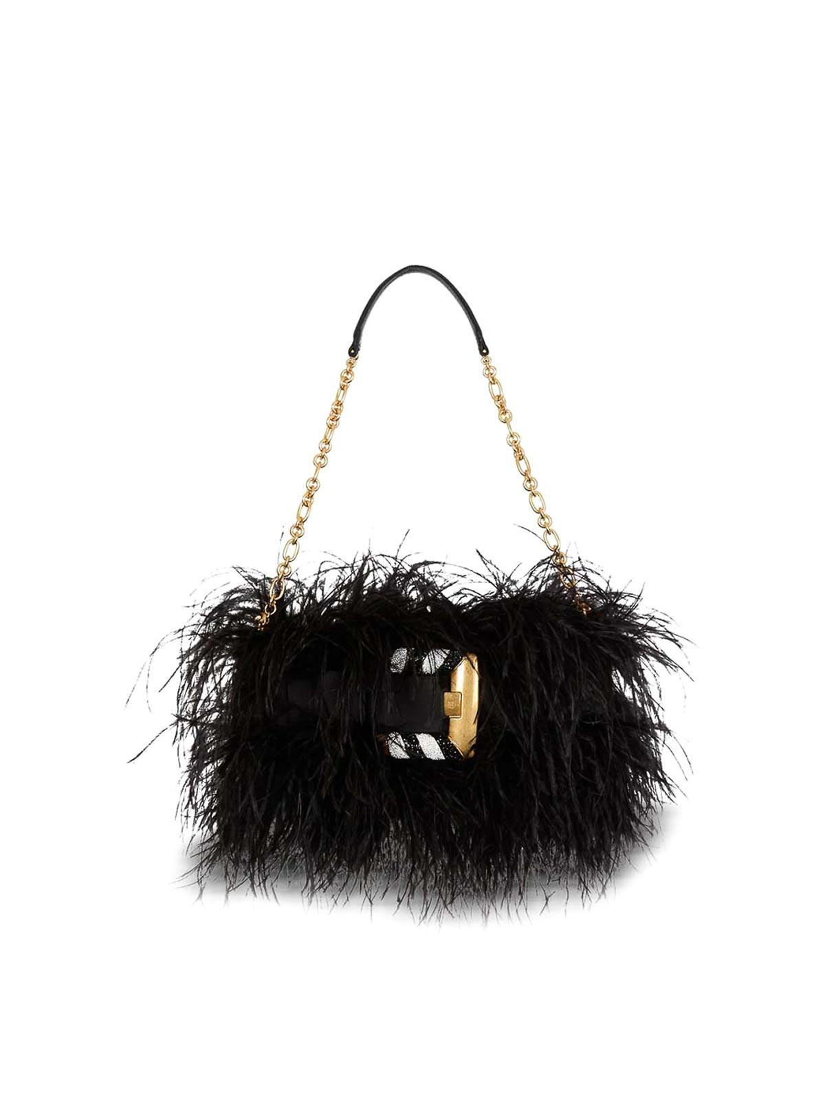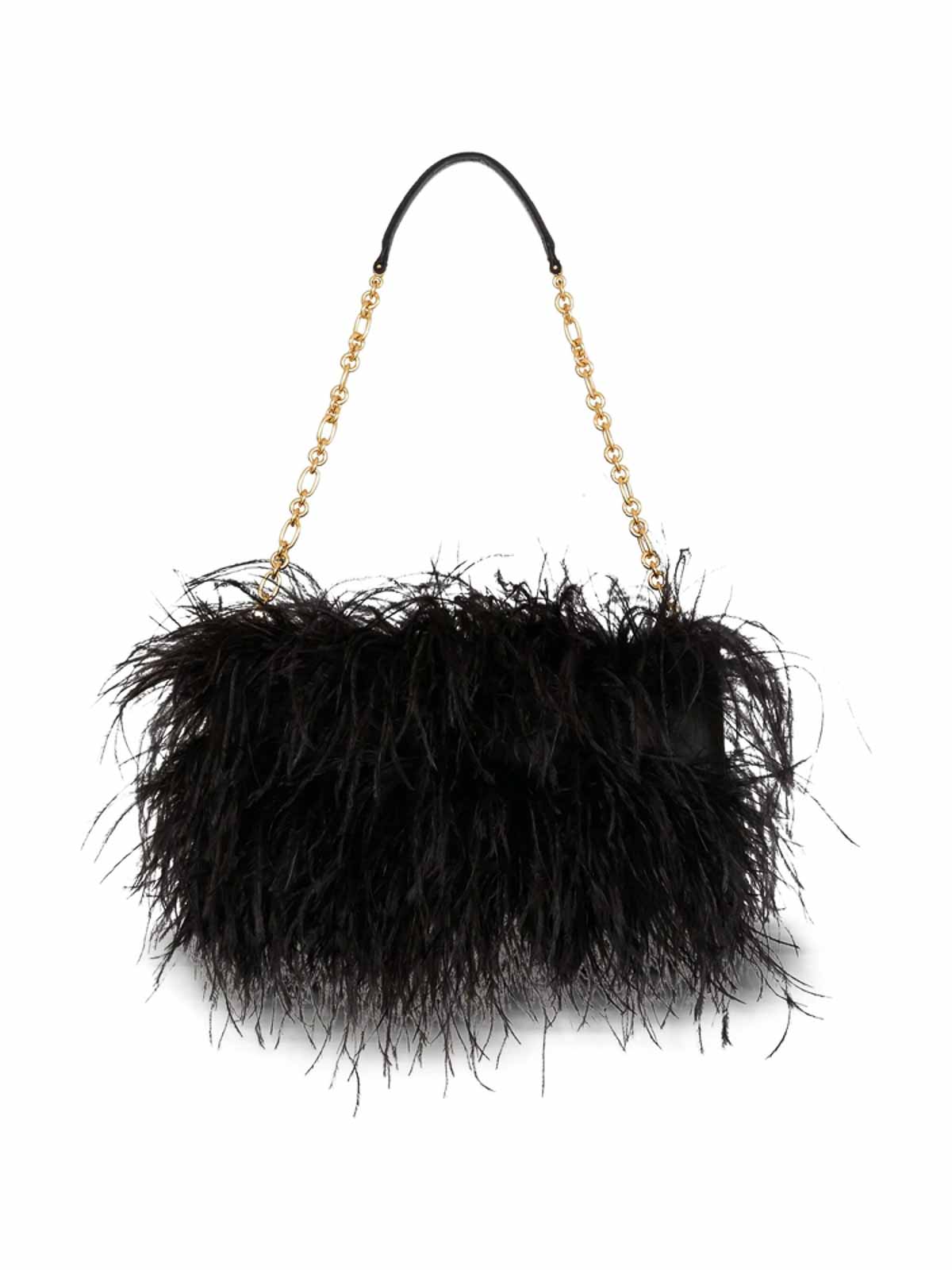 ブラックフェザーディテールクリスタル装飾チェーンストラップゴールドトーンハードウェアトグルファスナー