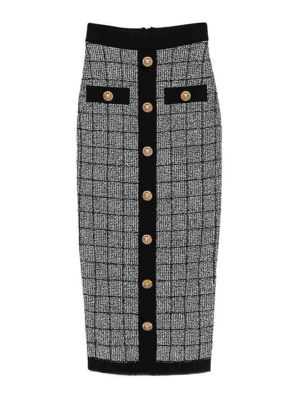 ブラックチェック柄ゴールドトーンボタンコントラストトリムボタン留めハイウエスト