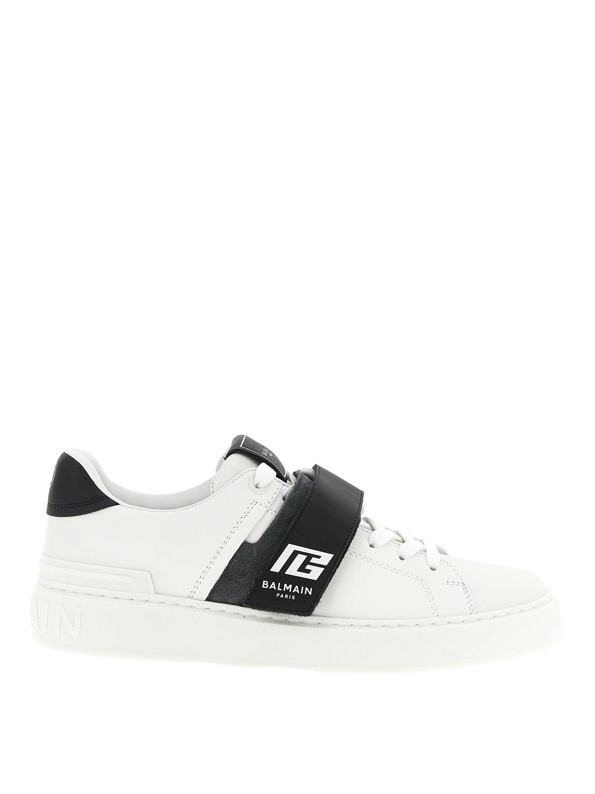 b-cout' カーフレザースニーカー、ロゴパッチトング付き、コントラストバットレス付きレースクロージャー、エンボス加工ロゴとベルクロクロージャー、エンボス加工ロゴ付きコントラストヒール、エンボス加工ロゴ付き厚みのあるラバーソール。