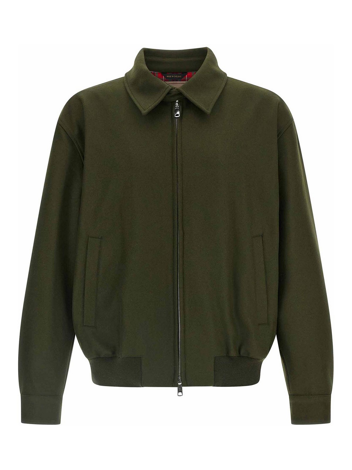 melton G18インチウールとカシミアの混紡ジャケット。シャツカラー、フロントファスナー、ポケット、ロングカフスリーブ、マイクロリブ編みのストレッチニットの裾、タータン柄のコットン裏地付き。
