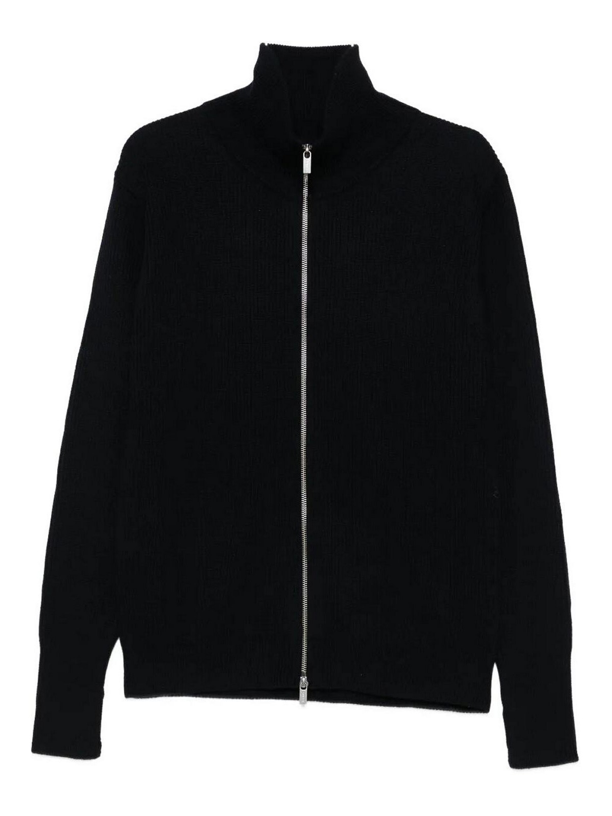Barena Venezia ダークブルーのウールカーディガン、ツーウェイジッパー、リブニット。