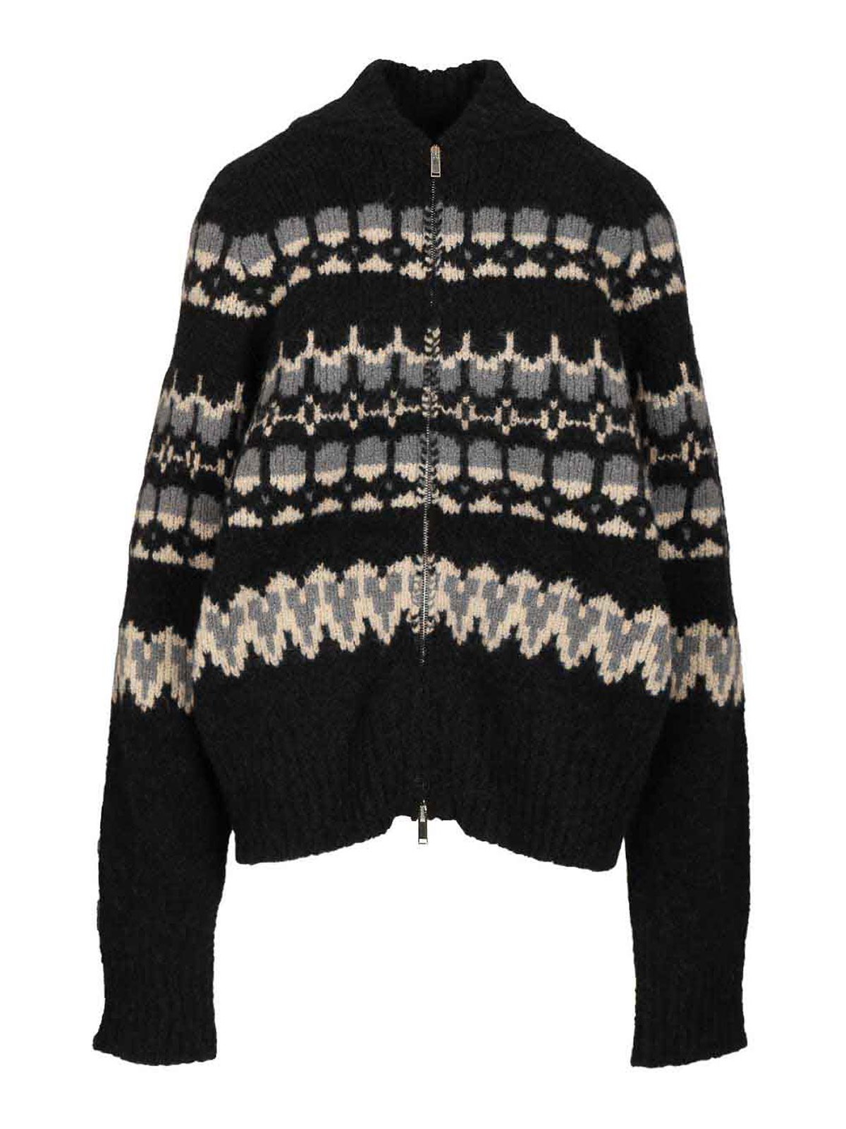 Barenaによるアルパカとウールのジャカード織りをミックスしたアンダース Caleo カーディガン。ダブルスライダージップとボンバースタイルの襟が特徴