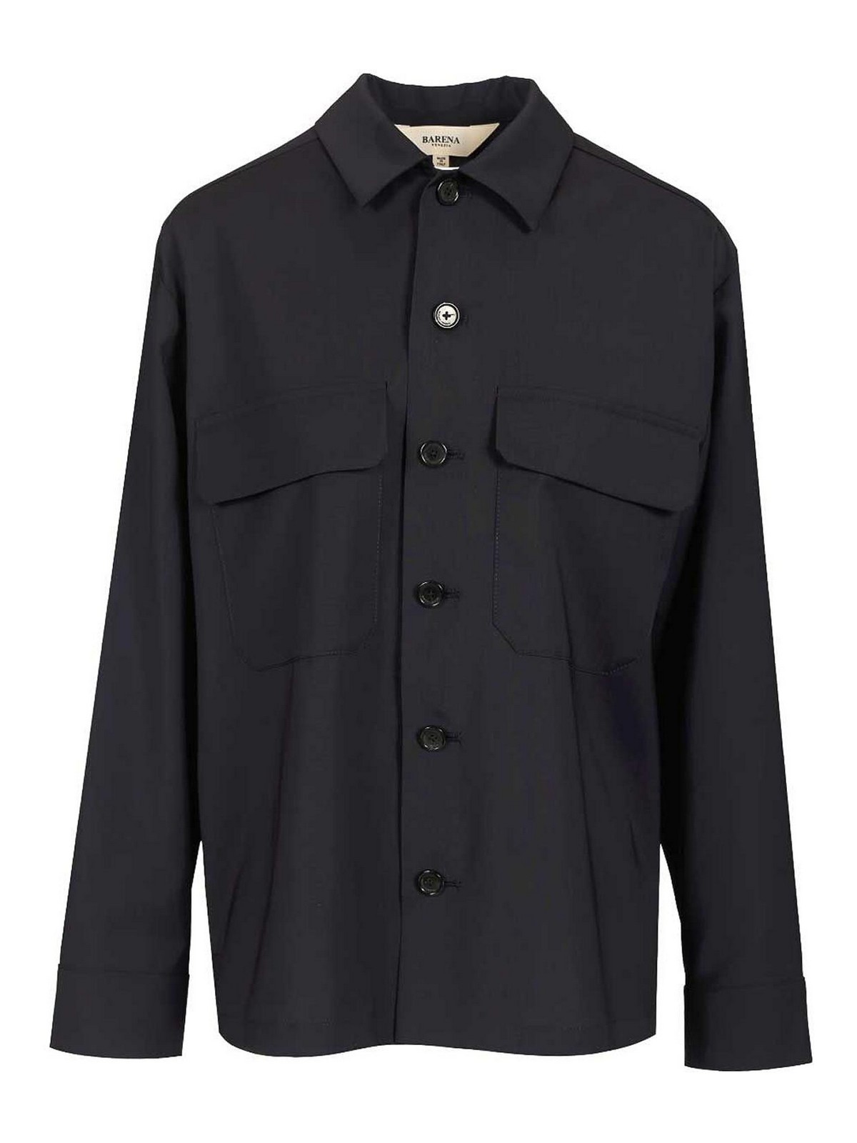 Barenaのmarinelliトロピカルオーバーシャツ。胸にフラップが付いたパッチポケットとしっかりとしたシルエットが特徴です
