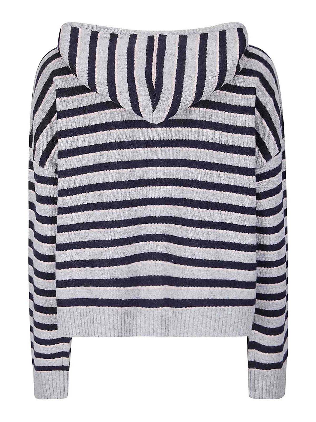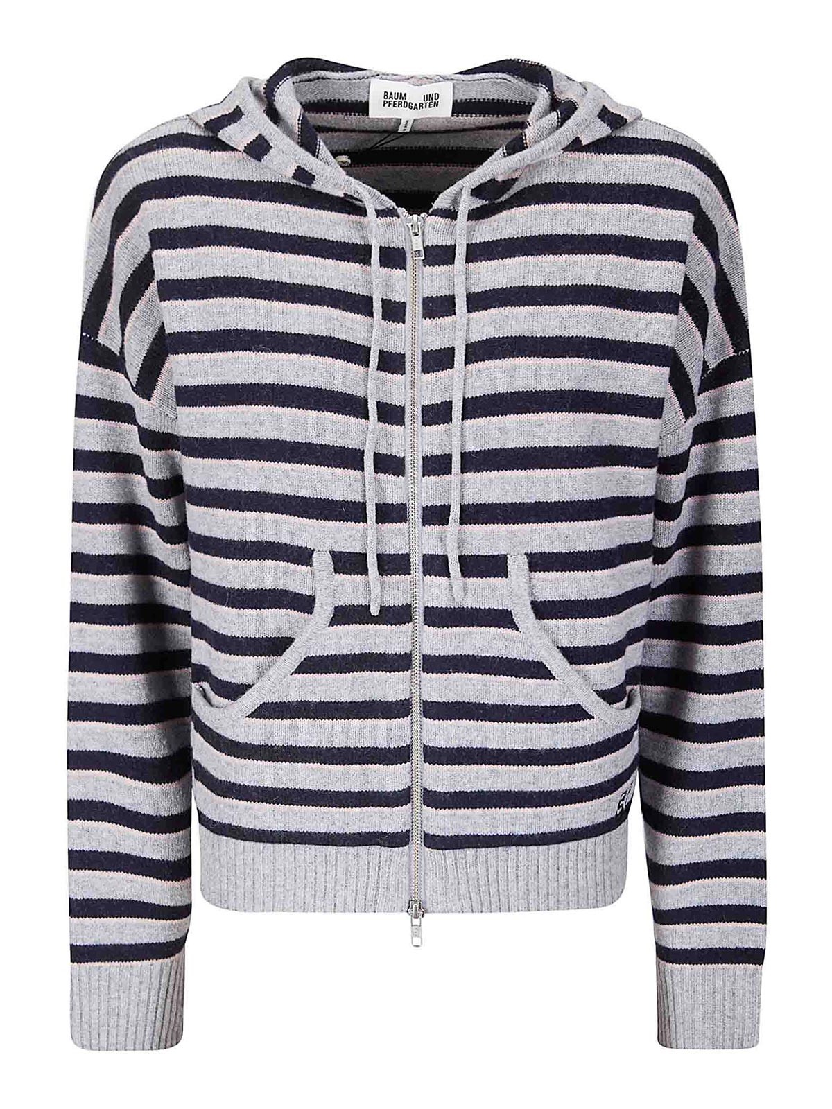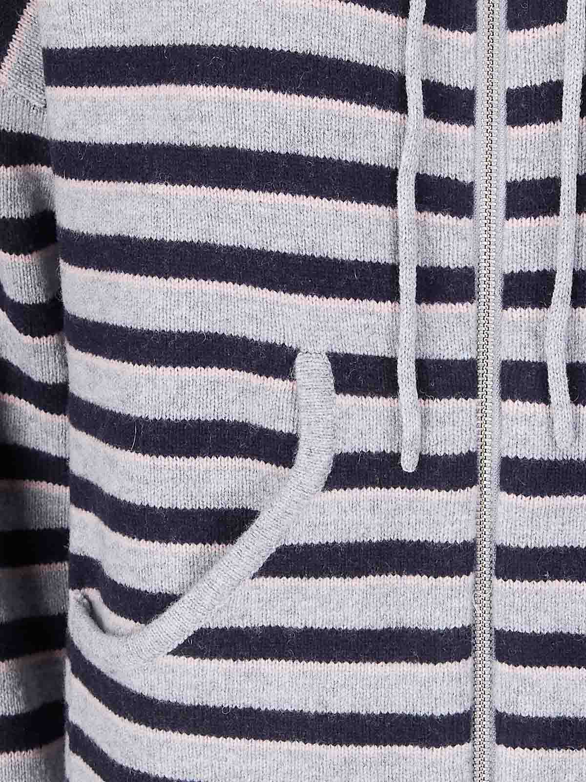 軽量メリノウールのスウェットシャツ。フード、ファスナー開閉、ストライプのテクスチャ、ショートフィット、レギュラーフィット。