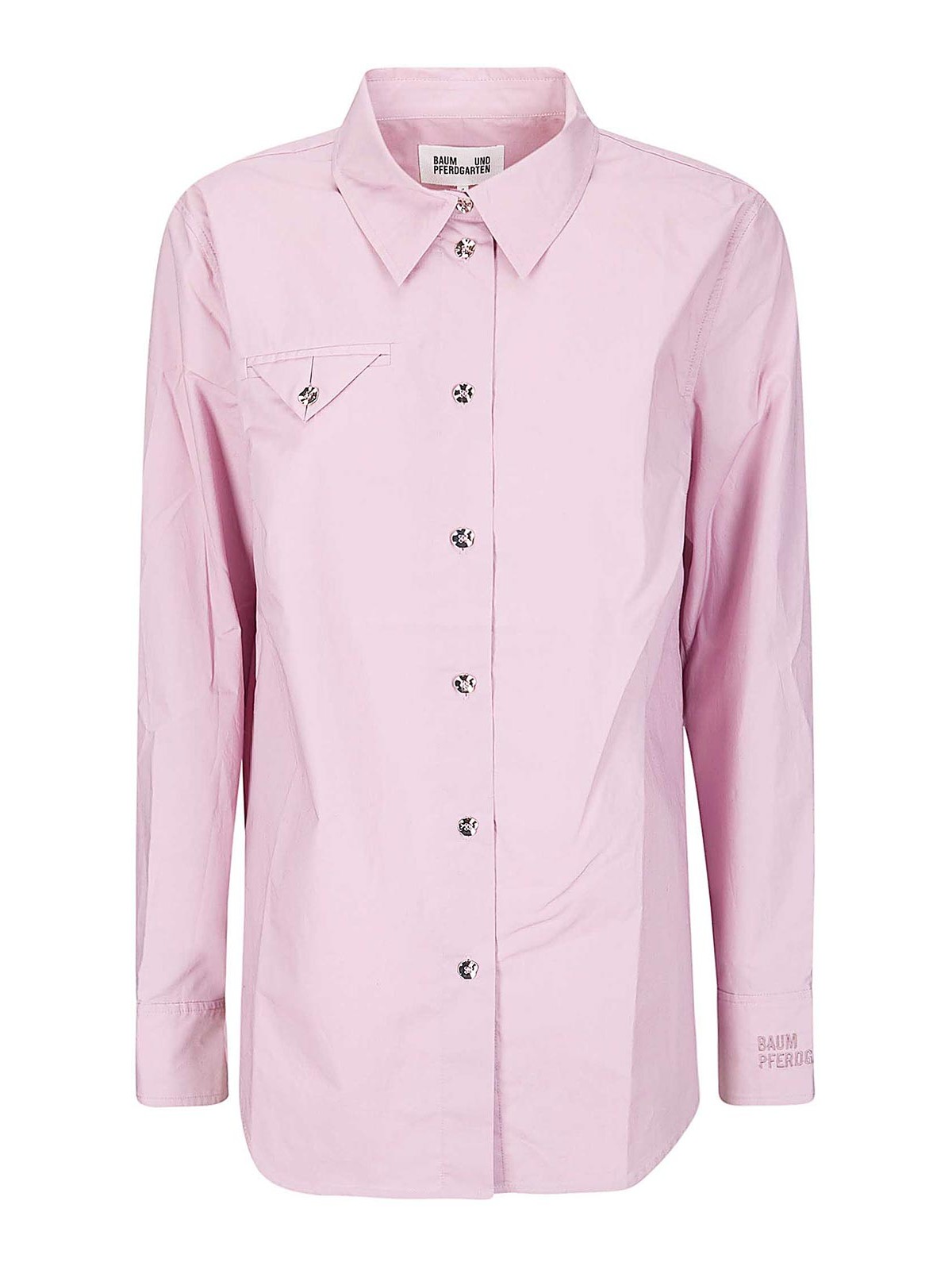 ライトオーガニックコットンのシャツ、不規則な形のコントラストの効いたボタン、ディテールが施されたポケット、快適でロングフィット。