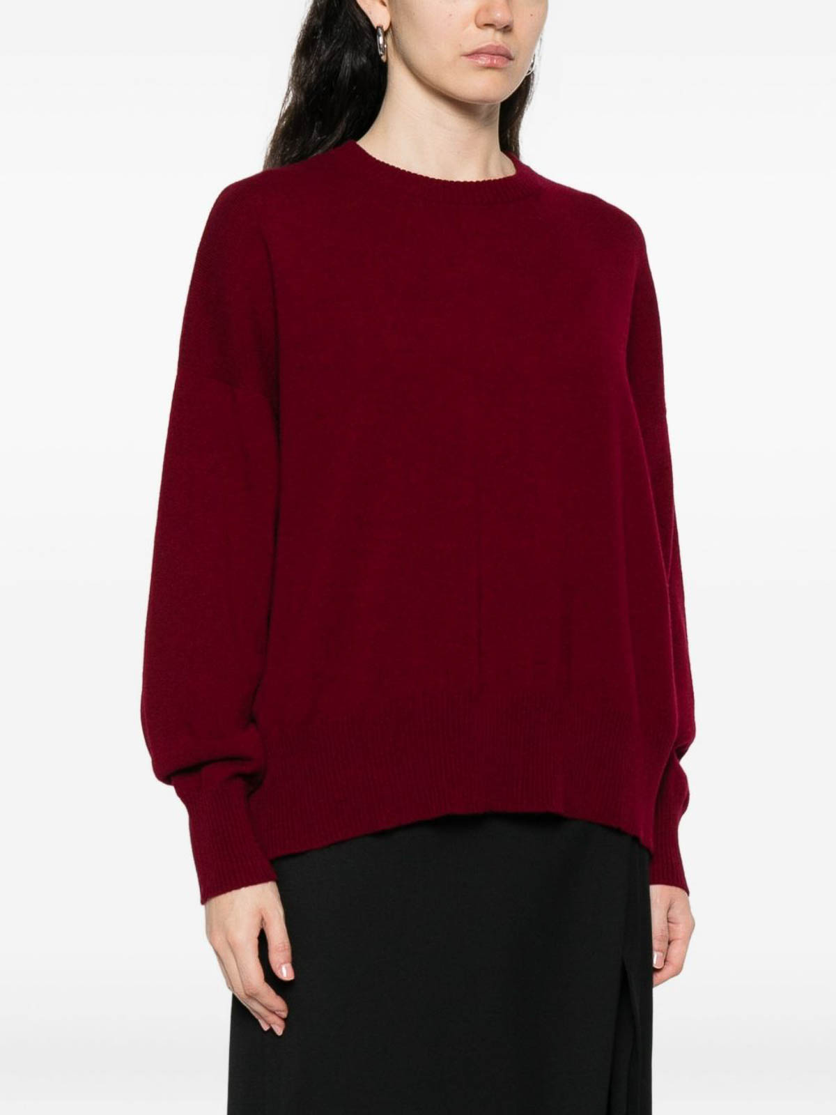 ダークレッドカシミアクルーネック長袖リブ編みカフスストレートヘム