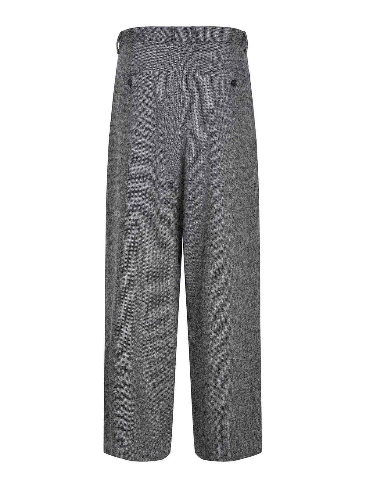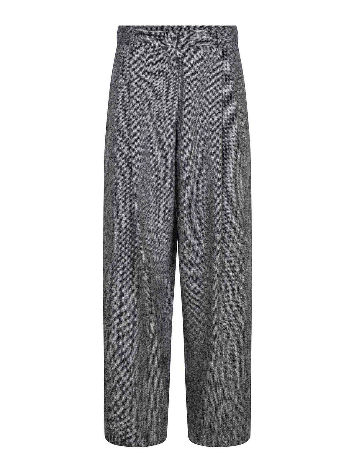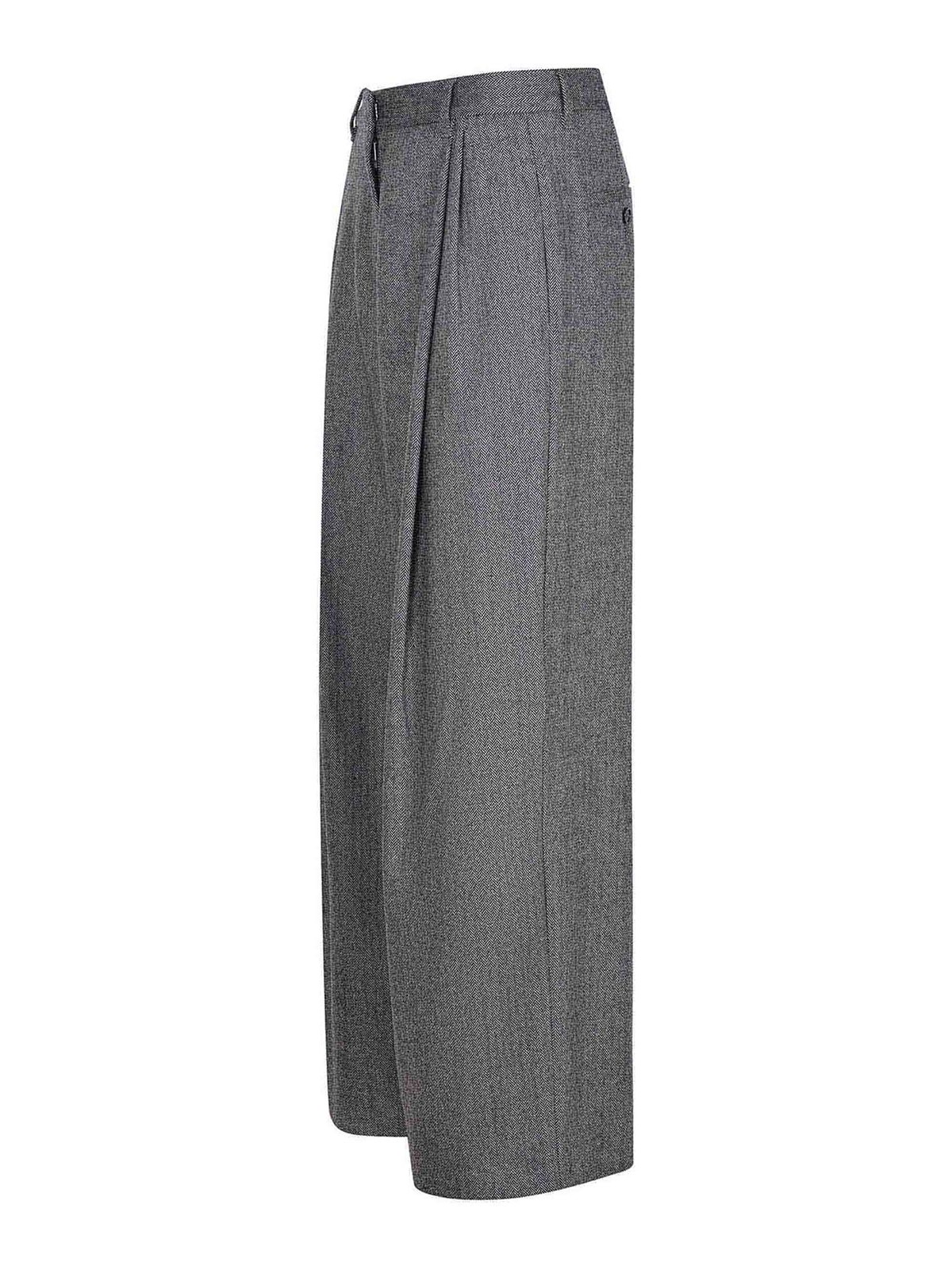 s max mara belloパンツグレーのアンスラサイトウール混紡素材、フロントにダブルプリーツが付いたワイドレッグ、ジッパー、フラップ、フック付きのハイウエストバンドクロージャー、ウエストにベルトループ、サイドポケット、背面にボタン付きウェルトポケット、ウール 84%、ポリアミド 15%、エラステイン 1% イタリア製