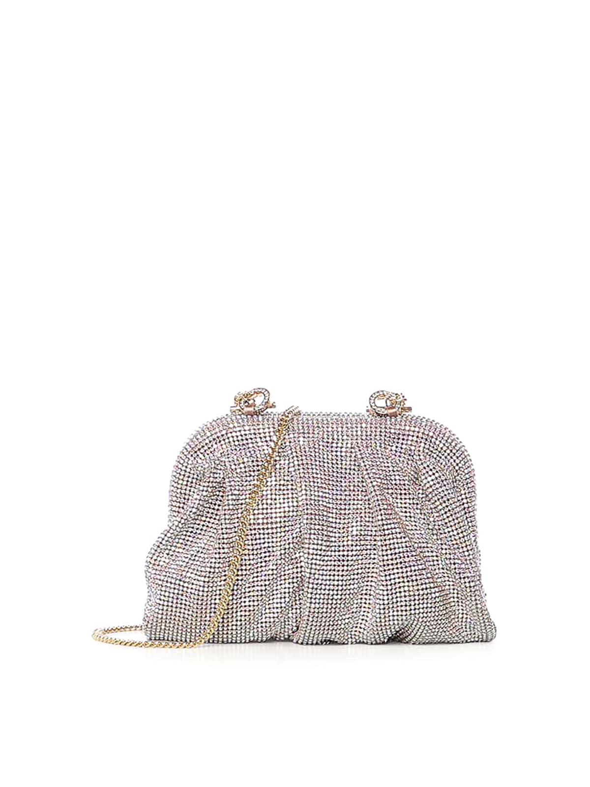 クリスタルラインストーンがちりばめられたアルミニウムメッシュ製、シルクサテンの裏地、寸法:19 x 12 x 5.5 cm、イタリア製、デザイナーカラー:シャペロワーズ