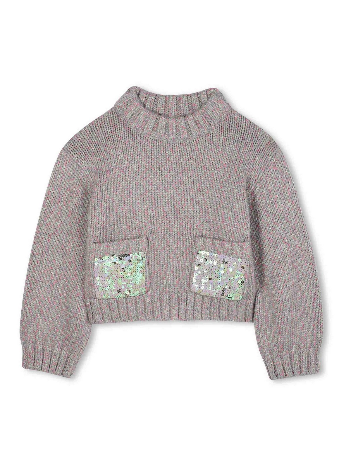ライトグレースパンコールプルオーバータートルネックバルーンスリーブスパンコールフロントポケットリブ付きヘム