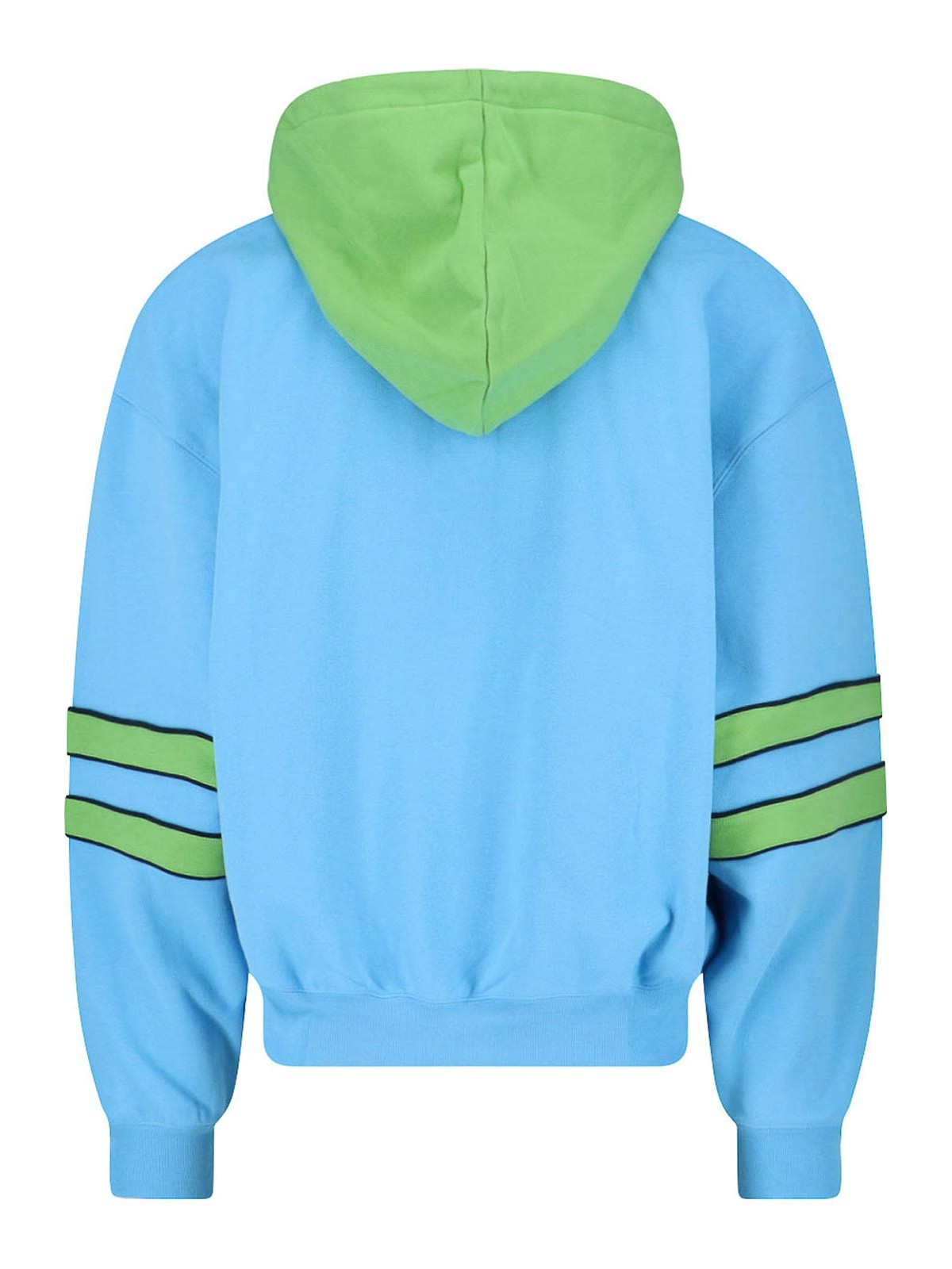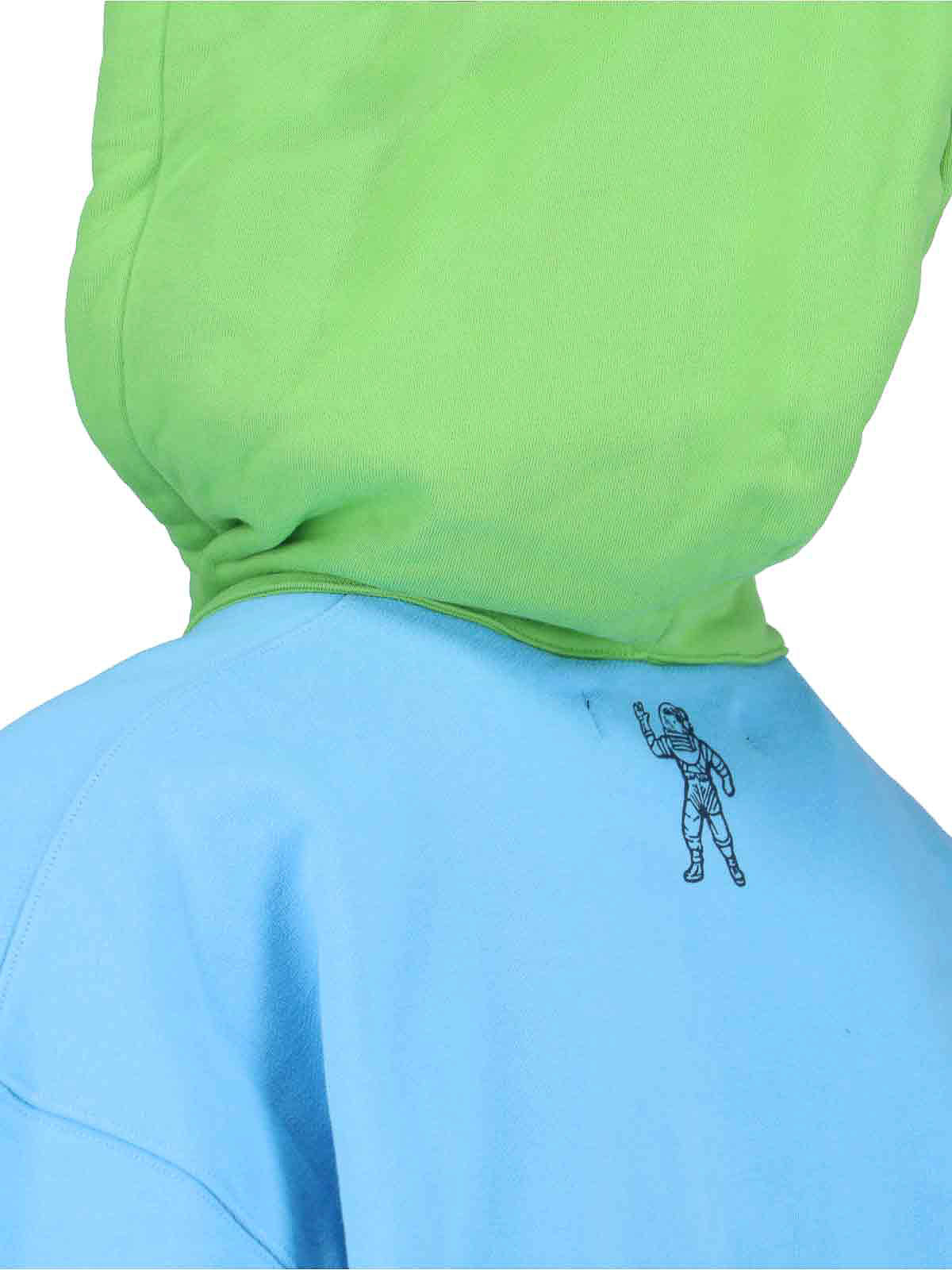 Billionaire Boys Clubロゴパーカー、ライトブルーとグリーンのコットン、ドローストリングフード、フロントにマキシロゴプリント、袖にコントラストカラーのバンドディテール、フロントにマキシポケット、バックにロゴプリント、リブ仕上げ、ストレートヘム。