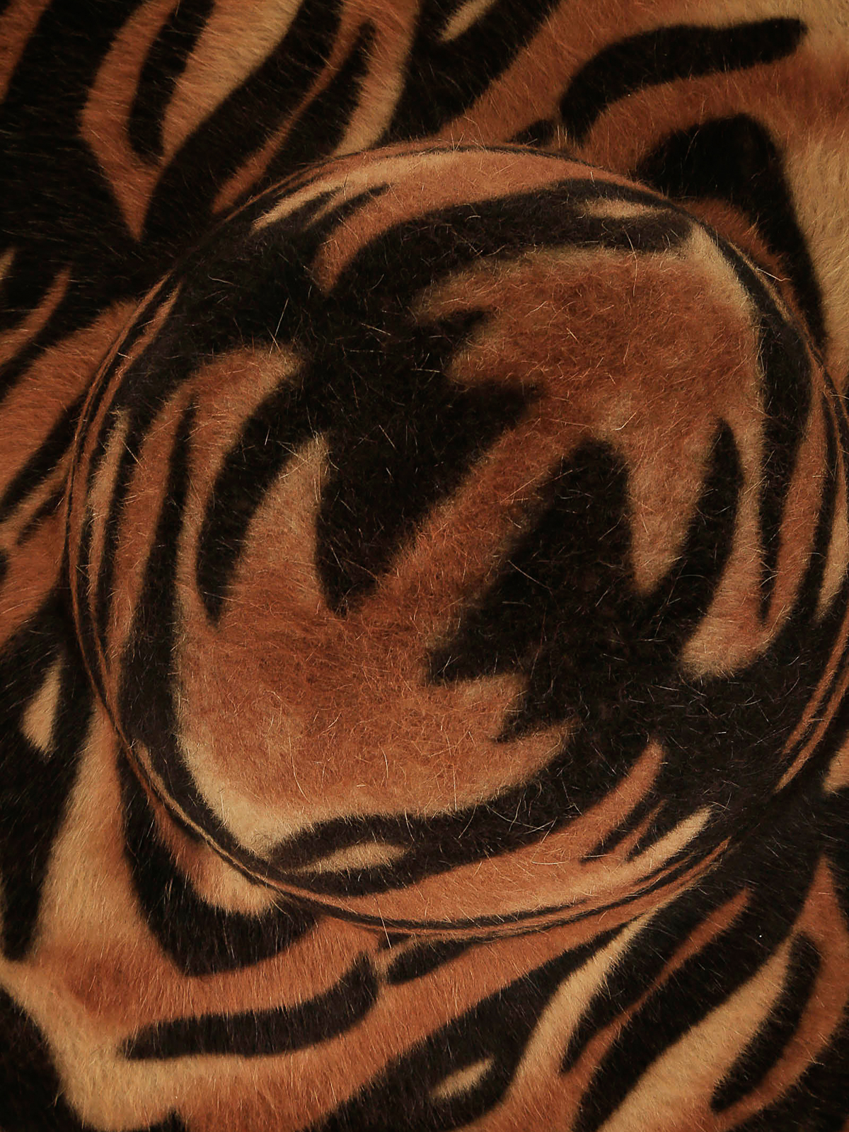 ボルサリーノタイガー柄ウサギ毛皮ハット、ボルサリーノロゴディテール付き