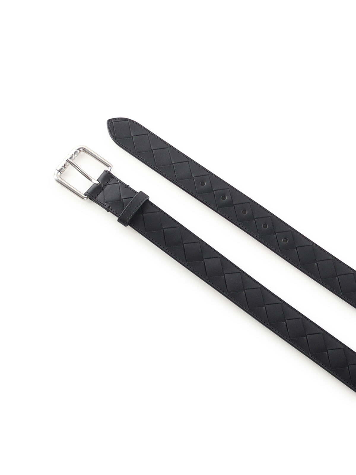 イントレチャート模様のカーフスキン製、プロングクロージャー、メタルバックル、イタリア製、色:黒